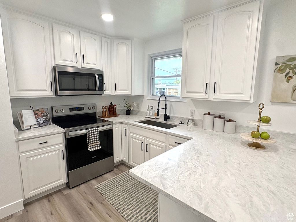 Fully Remodeled home with ADU/mother-in-law apartment and solar panels in West Valley City. This beautifully updated, spacious 5 bedroom, 3 bath home is located on a quiet street, and offers the perfect blend of comfort and convenience. The updated kitchen features quartz countertops w/bar seating, new appliances, recessed lighting and modern finishes, creating a contemporary space for cooking and gathering. Living room includes a fireplace, recessed lighting and large picture window with mountain views. The gorgeous master bedroom has large windows offering plenty of natural light, as well as recessed light fixtures and a new deck. New Master bathroom and walk in closet w/ laundry hookups finish off this elegant space. New upstairs main bath with tub, upstairs laundry in hallway, and 2 large bedrooms complete the upstairs level. Lower level is a fully remodeled Mother-in-Law apartment with separate entrance that could facilitate multi-generational living, or a nice extra income stream. Full kitchen with Quartz countertops, recessed lighting and new appliances, connected to a large living area with recessed lighting and large windows providing ample natural light. Stylishly remodeled downstairs bathroom features large vanity with quartz countertops, double sinks and large walk-in shower. The two spacious downstairs bedrooms have large windows providing natural light. Lots of storage in the laundry area and stairway closet. Exterior is xeriscape in the front yard, and a mix of xeriscape and landscape in the back yard. The extra wide driveway has space for additional tenant/mother in law parking, or an RV. The concrete pad extends beyond the driveway gate, and has a large shed for storage, as well as space to store additional items like motorcycles, mowers etc. Bonus- large workshop/craft room beneath the master bedroom (could be used for storage as well) has a brand new furnace and A/C providing premium climate control for both spaces. Last but not least, new electrical panel and newer roof provide peace of mind that no large unexpected expenses are forthcoming. Come tour this property to experience the level of comfort and style you expect in your new home! (Square footage amount reflects finished porch area changed to living space. Buyer to verify.)