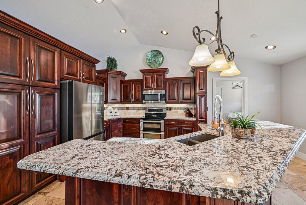 GRAND OPENING | OPEN HOUSE | NOVEMBER 1 | 11AM-2PM | Beautifully updated home in West Jordan with a spacious layout and stunning finishes throughout. The kitchen is a showstopper with rich cherry-stained cabinetry, granite countertops, stainless steel appliances, a large island, granite sink, and travertine flooring. Plantation shutters and updated recessed lighting add style and function to the main living areas. The primary suite includes a walk-in closet and an updated 3/4 ensuite bath. Downstairs you'll find a large family room featuring a fun kids' cave under the stairs, plus a versatile flex room ideal for a home gym, craft room, or office. The main bathroom has also been updated, and the water heater was recently replaced for peace of mind. Outside, enjoy a huge lot with no back-fence neighbors for added privacy, along with a two-car garage. This home is move-in ready and offers the perfect blend of comfort, style, and space-don't miss it!