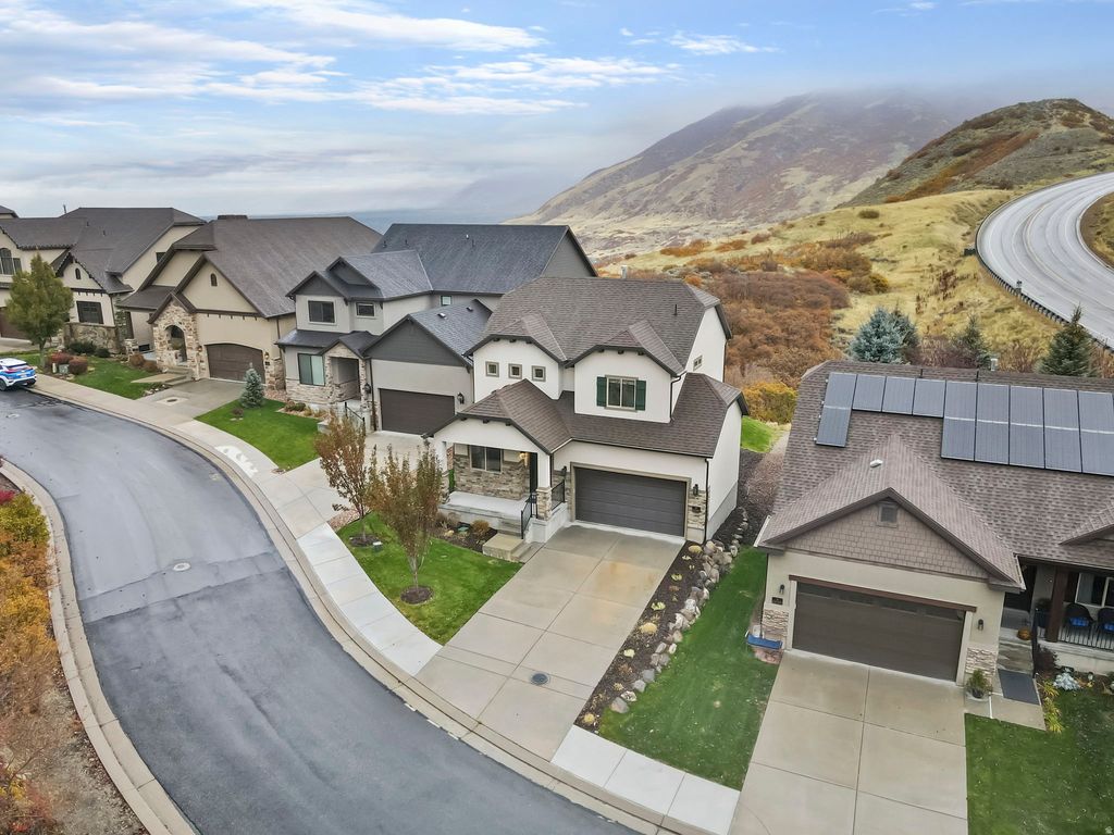 Welcome to a rare opportunity to live in one of Draper's premier million dollar neighborhoods, Montreaux, located in the heart of Corner Canyon. This home offers breathtaking views both day and night, with direct backyard access to an extensive network of hiking and mountain biking trails. Meticulously cared for and maintained, this residence feels like new and stands out as one of the most pristine homes in the area. Inside, you'll find elegant granite countertops, premier finishes, and a layout designed for both comfort and style. Enjoy easy living with the HOA covering all landscaping, allowing you more time to relax and take in the surrounding beauty. Situated above the city, residents enjoy cleaner air and noticeably cooler summer temperatures, all within top-rated school boundaries and just five minutes from I-15. Experience the perfect blend of convenience and tranquility in your private retreat away from the city hustle and seasonal inversion. Square footage figures are provided as a courtesy estimate only and were obtained from county records. Buyer is advised to obtain an independent measurement.