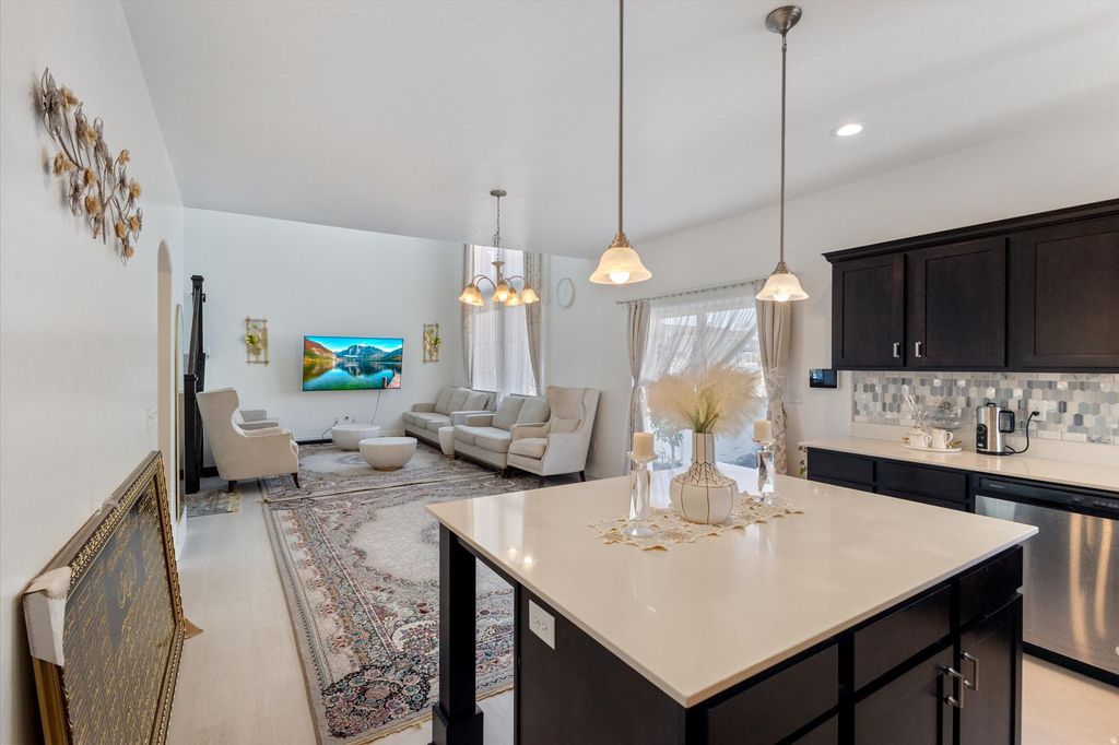 Preferred lender incentive of 1% being offered toward closing costs or rate buydown. Seller requires a 2-hour heads-up for showings as they currently occupy the home. This stunning home, built in 2018 and fully remodeled, offers plenty of space and comfort with 6 bedrooms and a fully finished basement, perfect for any family. The home has been fully renovated and features hard flooring throughout. Several areas are styled with elegant imported rugs that add warmth and sophistication while preserving the clean, modern look of the space. Enjoy an oversized outdoor patio with a gazebo and built-in fireplace, ideal for summer BBQs or evening get-togethers. Inside, you'll love the vaulted ceilings, spacious kitchen designed for cooking or entertaining, and the fully fenced backyard that's perfect for kids or pets. Sitting on a desirable corner lot with a two-car garage, this home truly checks every box. The water softener, furnace and roof are 7 years old, adding peace of mind for future maintenance. Located just minutes from Mountain View Corridor and Mountain View Village Shopping Center, you'll have quick access to shops, restaurants, and entertainment. The neighborhood is also incredibly family-friendly, just a short walk to J. Lynn Crane Park with its splash pad, ice rink, and year-round community events. Square footage figures are provided as a courtesy. Buyer is advised to obtain an independent measurement. Buyer and broker to verify all information, including HOA details. See agent remarks for showing and offer instructions.