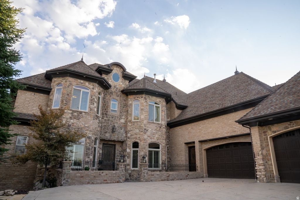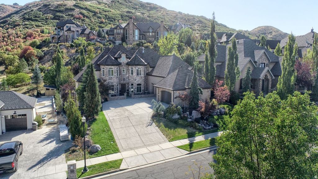 Significant price reduction on this French chalet-inspired luxury estate with private pool and stunning mountain views, offering over 8,000 square feet of refined living space. The stunning backyard is an entertainer's dream, featuring a gorgeous custom pool with built in rockslide, total privacy with breathtaking views of the Wasatch mountains. Inside, the expansive kitchen and family room boast massive windows that showcase the serene mountain landscape and beautifully designed outdoor oasis. The main floor also hosts a large office and a luxurious primary suite with plantation shutters leading to a covered patio. Upstairs includes a second bedroom suite, 2 additional bedrooms, 2 theater rooms, second office leading to a covered balcony. The large basement includes a kitchen, 2 family rooms, large game room/den, exercise/dance room, den/craft room, storage rooms, second large theater room, steam shower, and walkout covered patio. Located in one of Draper's most coveted luxury neighborhoods, this exclusive home offers a rare opportunity for elegant living with privacy and space. Move in ready in this highly desirable Draper neighborhood!