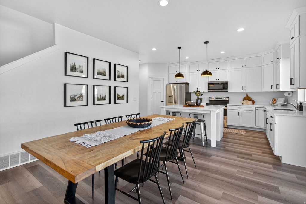Discover the perfect blend of style, comfort, and functionality in this stunning 2022-built home. The open-concept main floor welcomes you with 9-foot ceilings, luxury vinyl plank flooring, and tons of natural light. A gorgeous designer kitchen featuring shaker-style upper cabinets, extended island with seating, quartz countertops, and abundant storage-ideal for cooking, entertaining, and everyday living. Upstairs, you'll find 4 spacious bedrooms and two full bathrooms, including a serene Primary Suite with a huge walk-in closet, euro-glass shower, and dual sinks. The fully finished and fenced backyard is your private retreat, complete with a custom deck, garden beds, and peaceful rural views and sunsets. Plus, no back neighbors! Every detail of this home has been thoughtfully designed for beauty, flow, and modern living. Homes like this rarely come along-schedule your private showing today!