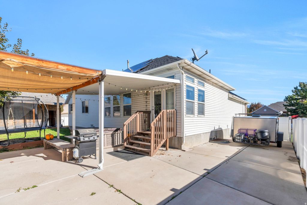 Welcome home to this spacious 5-bedroom, 3-bath rambler perfectly situated on a beautifully landscaped CORNER LOT. From the moment you arrive, you'll appreciate the MATURE TREES, FULLY FENCED yard, and inviting curb appeal that make this property stand out. Step inside to a bright, OPEN FLOOR PLAN filled with natural light from the large DOUBLE PANE windows throughout. The main level offers LVP FLOORING and seamless flow between the living, dining, and kitchen areas-perfect for both everyday living and entertaining. The master suite is a peaceful retreat featuring a GARDEN TUB and plenty of space to relax and recharge. The FULLY FINISHED basement adds even more versatility, offering additional bedrooms, a full bath, and plenty of space for a family room, home gym, or guest area. Outside, enjoy your private COVERED PATIO, ideal for outdoor dining, barbecues, or quiet evenings surrounded by mature landscaping. The home also includes RV PARKING, a storage SHED, and SOLAR PANELS to help keep utility costs low. With a NEWER FURNACE & WATER HEATER, this home combines comfort and efficiency. Walking distance to the elementary school-and NO HOA! Roof is at end of life but with the right offer, funds can be escrowed for repair.