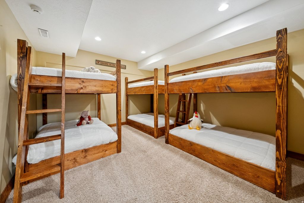 Tucked away on a quiet street in the back of Jeremy Ranch, this home offers the perfect balance of privacy, views, and convenience. Just minutes from Main Street Park City, world-class ski resorts, and a quick drive to downtown Salt Lake City or the international airport, the location is hard to beat. Inside, the generous living spaces and gourmet kitchen featuring Wolf, Sub-Zero, and Asko appliances make entertaining and everyday living a joy. A true great room with vaulted ceilings, a stone fireplace, wet bar, and wall-to-wall windows frames the spectacular mountain views. The expansive covered deck extends your living space year-round. The primary suite is a retreat in itself-complete with a spacious walk-in closet, built-in cabinetry, washer and dryer, dual vanities, a rain shower, and a jetted tub. Five additional bedrooms, including a fun bunk room (sixth bedroom, non-conforming without a window), provide plenty of room for family and guests. Freshly updated with brand-new carpet throughout, this home feels crisp and move-in ready. Thoughtful upgrades include Sonos speakers throughout and remote-controlled A/C and furnace with four heating zones. The oversized, heated four-car garage features hot and cold water hookups, abundant storage, and a heated driveway. Outside, enjoy a private hot tub and fully fenced backyard-perfect for play or pets. Whether you're looking for a full-time residence or a second home in the mountains, this property checks every box. Offered fully furnished, including the Sonos sound system and custom-built bunk beds for six, it's ready to enjoy from day one.