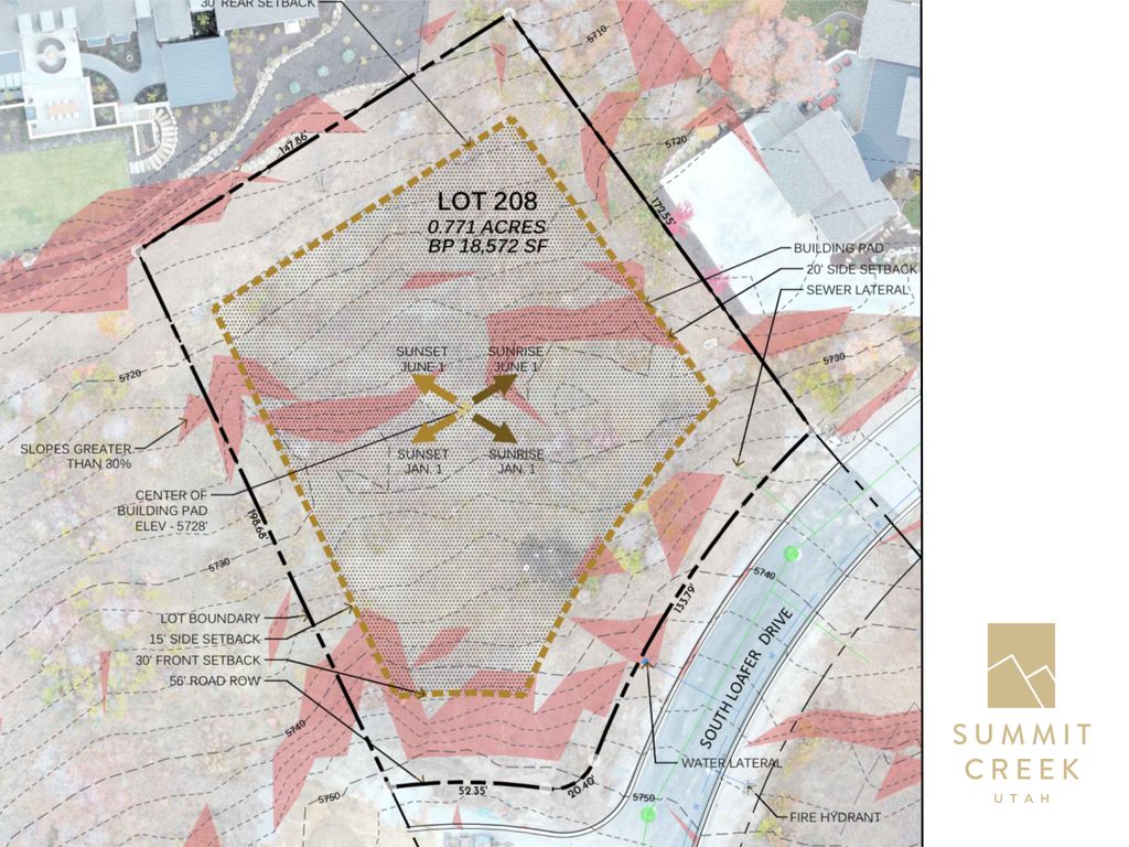 Lot #208 is a gated cul-de-sac homesite that offers privacy, security, and incredible views. The gentle slope is ideal for a walkout basement, giving you flexibility in your home design. Both mountain and valley views are available here, but it's the wide-open valley vistas that make this lot truly special. Summit Creek is a private community at the base of the Wasatch Range, designed for people who want beauty, comfort, and connection. Residents enjoy a modern clubhouse, fitness center, pools, hot tub, and miles of trails for hiking, biking, and exploring. With luxury custom homes and stunning scenery all around, Summit Creek is the perfect place to build your dream home.
