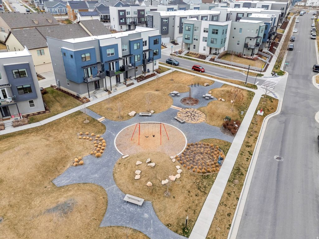 Paseo accessed Townhome showcases a fantastic location in Daybreak with proximity to parks, walking trails, and a short drive to shopping, dining and entertainment! Open concept showcases 9ft ceilings and an inviting Living Room and adjacent Kitchen boasting a large island with built-in sink, SS appliances, quartz tops, and chic lighting! 2nd floor living space showcases 3 Bedrooms and 2 Full Bathrooms. The luxurious Primary Suite is spacious and includes vaulted ceilings and an ensuite Bathroom with a double vanity sink! 2nd and 3rd upstairs Bedrooms offers options for a home-office, exercise room, study space, creative studio and more! Residents will appreciate proximity to local parks, shopping, and dining options, as well as easy access to Bangerter Hwy and I-15 for a seamless commute. Capitalize on the available amenities and visit local attractions such as Daybreaks exclusive Oquirrh lake boasting over 67 acres of beautiful scenery for kayaking, paddle boarding, walking/biking trails, fishing and more! Schedule a showing and come tour this beautiful home today!