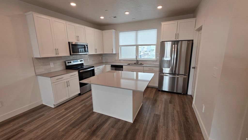 Innovative 3-Story Townhome with included Roof Top Deck with upgraded Trellis - perfect for taking in the spectacular Daybreak scenery. Just steps away from the South Jordan Parkway Light Rail Station, this home offers a convenient downstairs den with powder bathroom. Main living offers an open floor plan with a spacious kitchen - kitchen island with simply grey quartz countertops and upgraded cabinets in Duraform Linen White. The great room leads you to a 2nd floor deck perfect for morning coffee or evening relaxation. Final set of stairs takes you up to an amazing roof top deck to enjoy your own private outdoor space great for entertaining! *$2,395/mo for first 6 months, then rent will increase by $100/mo for the remainder of the lease.