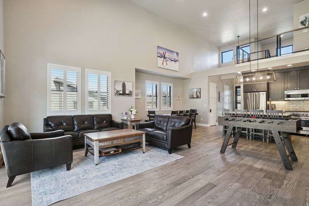 Welcome to your mountain and lakeside retreat in the heart of luxury living. Located just minutes from the new Deer Valley East Village and the picturesque Jordanelle reservoir, this tranquil getaway offers four-season mountain life style at your door step, while not sacrificing convenience. 40 minutes from the Salt Lake International Airport without any stop lights, and 15 minutes to everything Park City has to offer, such as ski resorts, entertainments, restaurants, shopping centers & grocery stores etc. The interior blends contemporary design with the timeless allure of the mountains. Walk into great room, the first thing you will notice is the towering fireplace decorated with modern stone veneer all the way to the ceiling, and then the gourmet kitchen completed with sleek cabinets, large island with quartz countertop, Viking appliances and ample cooking space to entertain your guests. Wood plantation shutters for all windows through the whole house. The master suite on the main level features an oversized walk-in shower with a freestanding soaking tub and electronically controlled shower heads. Upstairs you'll find another luxurious master suite and two more bedrooms with a Jack-n-Jill bath, offering privacy and space for your guests or family members. Nightly rentals are allowed. All furniture, appliances, decoration and setup are included in this sale, making it move in ready the moment you close. The clubhouse with swimming pool and hot tub and a pickle ball court is expected to complete this winter.