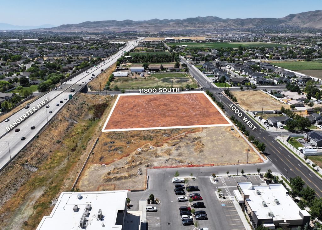 This 3.48 acre parcel is just west of Bangerter Hwy on 11800 South. Current zoning is A-5 but future land use is Economic Center. This is well suited to commercial or office development. This area is well established with residential neighborhoods, but is also adjacent to one of South Jordan's largest shopping, eating and entertainment centers, The District. Access to Bangerter Hwy is north on 11400 South.