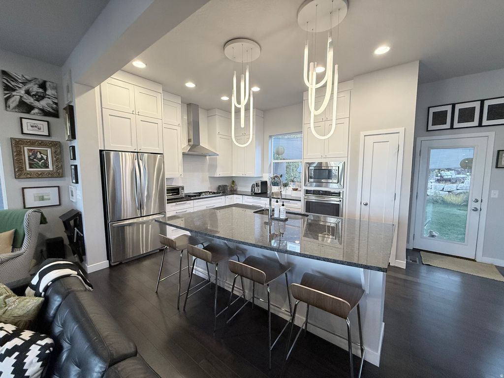 South Mountain 2 story with million dollar finishes*9 foot ceilings on top levels*Designer touches throughout*Stunning light fixtures*Custom Kitchen with oversized Granite Slab Island*Double ovens*Tile backsplash and double stacked cabinetry*Black hand-scraped real hardwood flooring throughout*Custom built ins with drawers for additional storage*Primary Suite with large walk in closet, Valley Views, Grand shower and double sinks*Over $50,000 in professional landscaping*The bushes and flowers change color all year round*Large porch and huge back patio*Rock gas backyard fireplace and sitting area*Room for another bedroom and bathroom on lower level*This home is located in a sought after neighborhood near trails, parks, the Draper rec center, amphitheater, and Elementary school. This will not disappoint shows better in person!