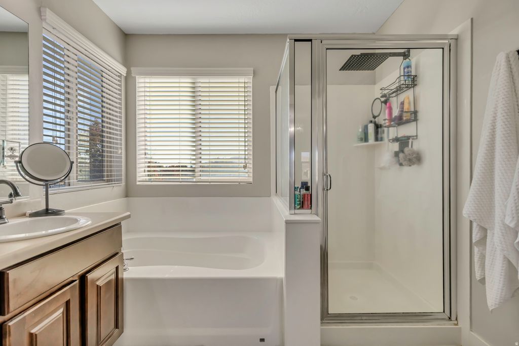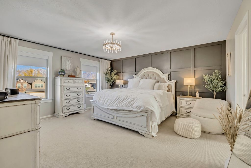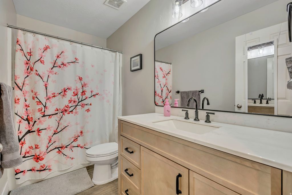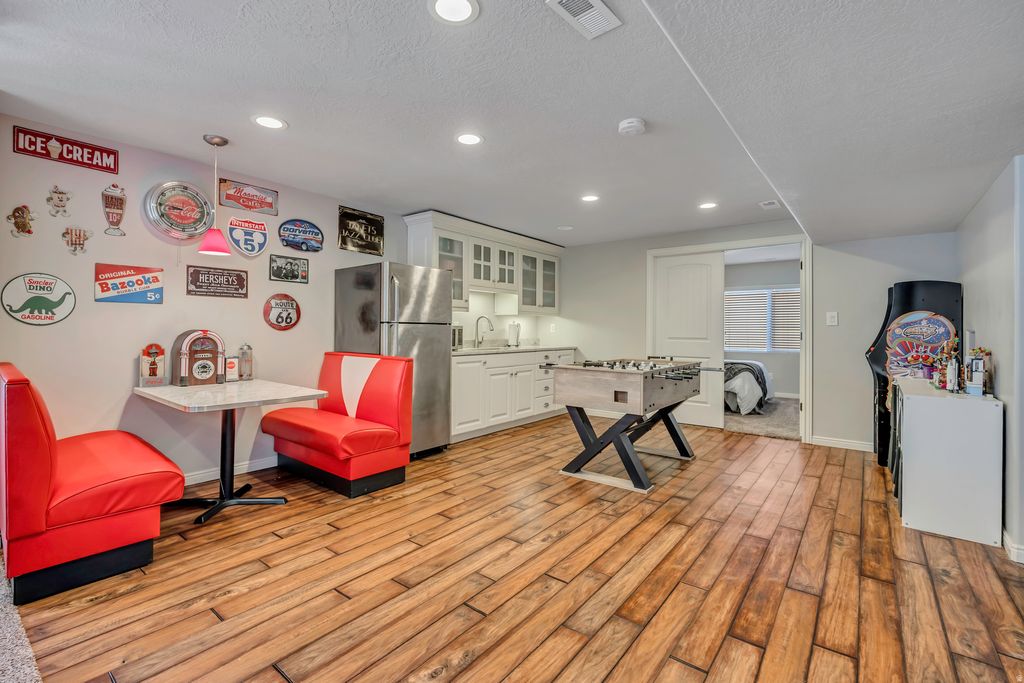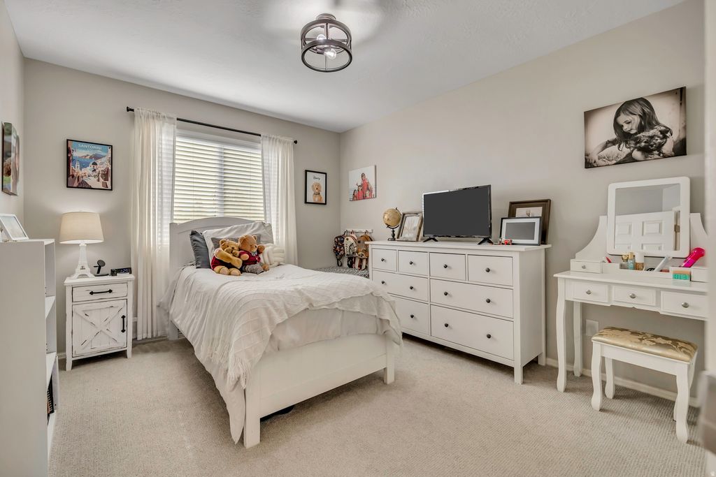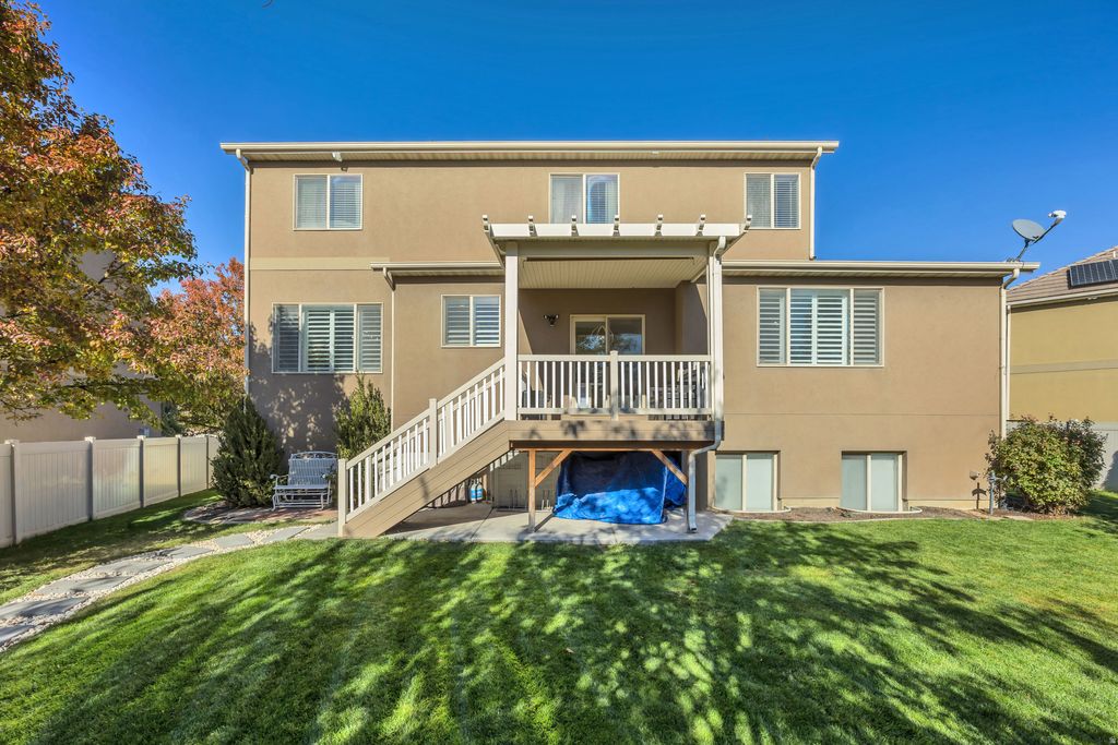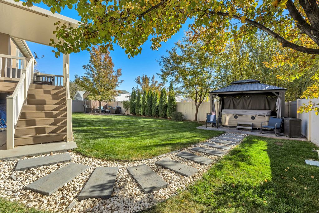 This beautifully maintained family home in an established Lehi neighborhood is move-in ready and waiting for its next family to enjoy! The property features a fully fenced yard with a storage shed, and the hot tub is negotiable with the sale. Inside, you'll find a warm and inviting layout with plenty of space to gather and grow. The basement is mostly finished, offering a large family room with a kitchenette - perfect for entertaining or extended family. Enjoy movie nights with the drop-down projector screen and included projector. This home has been meticulously cared for and is exceptionally clean - an ideal place to raise a family and create lasting memories.