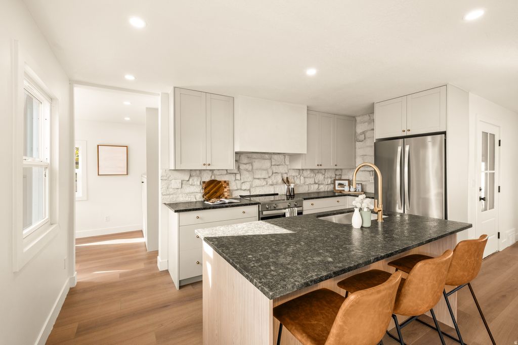Tucked away on a quiet street in one of Millcreek's most desirable areas, this home blends high-end style with everyday livability. This fully permitted top-to-bottom renovation was completed with custom-level detail and craftsmanship throughout. Every system is new-HVAC, electrical, plumbing, and more-paired with a redesigned open floor plan for modern living. Every detail has been thoughtfully updated-from the custom cabinetry and stone backsplash to the warm oak flooring and designer lighting. The open layout fills with natural light, creating effortless flow between the kitchen, dining, and living areas. Enjoy spacious bedrooms and beautifully finished baths, including a primary suite that serves as a true retreat with his-and-hers closets and a private bathroom that blends elegance with function. Outside, enjoy two one-car garages-an attached front garage and a detached extended garage behind the home-perfect for storage, a workshop, or extra parking. Every inch of this home reflects quality craftsmanship and thoughtful design-a rare opportunity to own a property that combines the feel of new custom construction with the soul of a bespoke renovation.