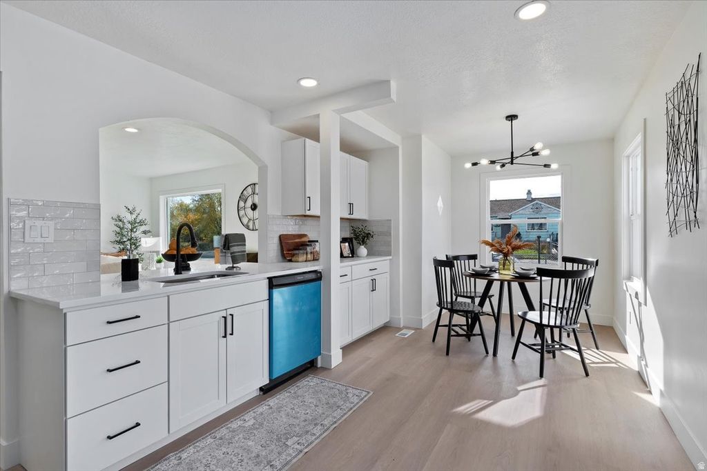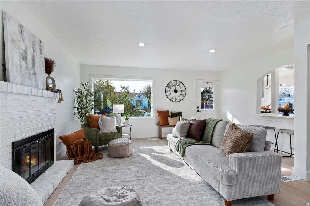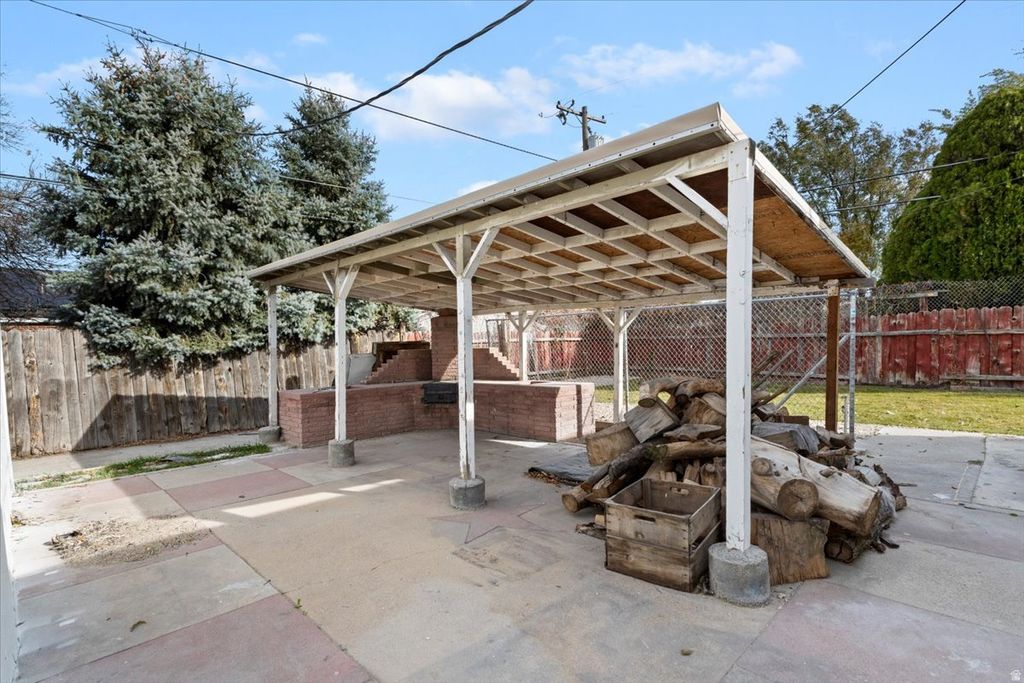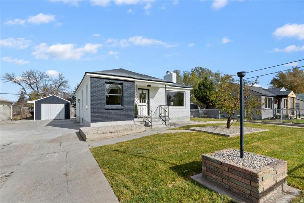 This beautiful, updated home offers turnkey modern living in the heart of Salt Lake County. This 1,816 square bungalow features four bedrooms and two bathrooms, all meticulously updated for style and comfort. Step inside to discover a designer kitchen featuring crisp white shaker cabinetry, stainless steel appliances, and sleek countertops, seamlessly connecting to a bright dining nook complete with built-in storage and a modern chandelier. The basement boasts a spacious Family Room made cozy by a white brick fireplace alongside the bedrooms. Outside, enjoy the privacy of a fenced, fully landscaped yard featuring a large, covered patio with a built-in brick grilling area, perfect for entertaining. A major highlight is the ample parking capacity, which includes a one-car detached garage and a paved driveway providing secure parking for up to four additional vehicles. With central air, gas forced air heating, and no HOA fees this move-in ready gem offers exceptional value and convenience.