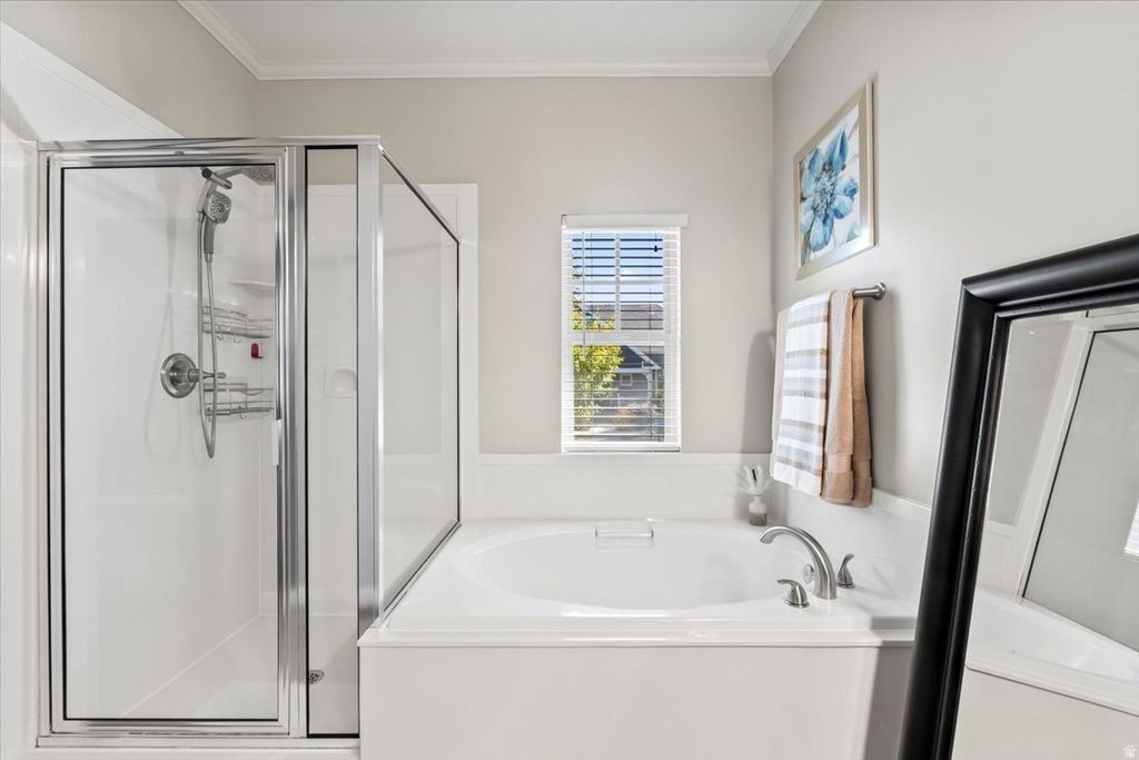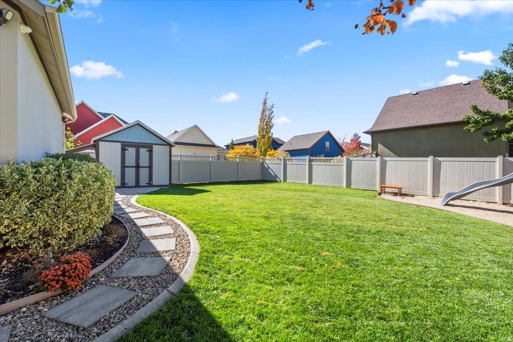 Marvelous combination of design, luxury, and lifestyle in this captivating Daybreak residence. Thoughtfully designed living spaces and inspired decor. Impressive upgrades features upgraded lighting, luxury vinyl flooring and painted wood panels. Gorgeous kitchen boasts quartz counters, striking backsplash and picture window overlooking magnificent, unmatched backyard. Splendid dining boasts designer chandelier. Luxurious main-level primary suite showcases rich decorator colors, custom wall unit and spa-inspired bath. Upstairs, natural light streams into bright, beautiful bedrooms and includes a dream bonus retreat; perfect for play, work, or relaxation. Inviting lower level offers wonderful entertainment spaces, theatre room, guest suite and abundant storage. Spectacular yard is amazing outdoor oasis with deck, patio, paver walkway, fruit trees, play area and more. Steps from Oquirrh Lake and incredible parks. Daybreak offers complimentary paddleboard, canoe and kayak rentals, free concerts, walking trail around lake, sandy beaches and more. Vibrant, new Downtown Daybreak offers restaurants, Megaplex entertainment complex and Salt Lake Bees Stadium. This home offers the perfect backdrop for extraordinary living.