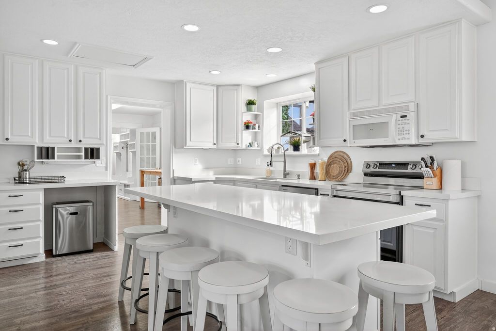 Stunning Estate Home located on 2+ acres offering a rare combination of luxury, space and versatility. This impressive residence features 10 bedrooms, 6.5 baths and 2 full kitchens, complemented by a separate attached residence, perfect for multi generational living or rental opportunities. Home has been remodeled with modern upgrades that include updated flooring, paint, bathrooms and kitchen. The thoughtful designed floor plan also includes a private office, fully finished oversized basement as well as 3 laundry rooms. The expansive grounds are a true oasis that includes a mature fruit orchard, grape producing vineyard, pickle ball courts, a multi use sport court and multiple patios for enjoying the breathtaking views. A large barn/shop with the second full kitchen provides ample space for hobbies or entertainment. The property includes culinary and irrigation water shares, ample RV parking and additional room in the rear portion of the lot for a future shop or other uses, making this estates an exceptional find! Schedule your private showing today.