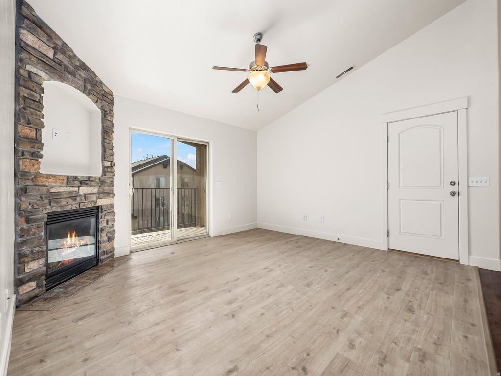 Step into turnkey comfort in this Top Level 3 bedroom, 2 bath, 1,210 sq ft condo-set in a newer 2013 building and refreshed top-to-bottom with brand-new laminate flooring and fresh paint. The light-filled living area centers around a gorgeous stone fireplace, creating an inviting spot to unwind or host friends. You'll love the location: minutes to I-15 for an easy commute, plus Walmart is roughly a 5-minute drive and you're surrounded by great places to eat. Stylish, low-maintenance, and truly move-in ready-this one checks the boxes.