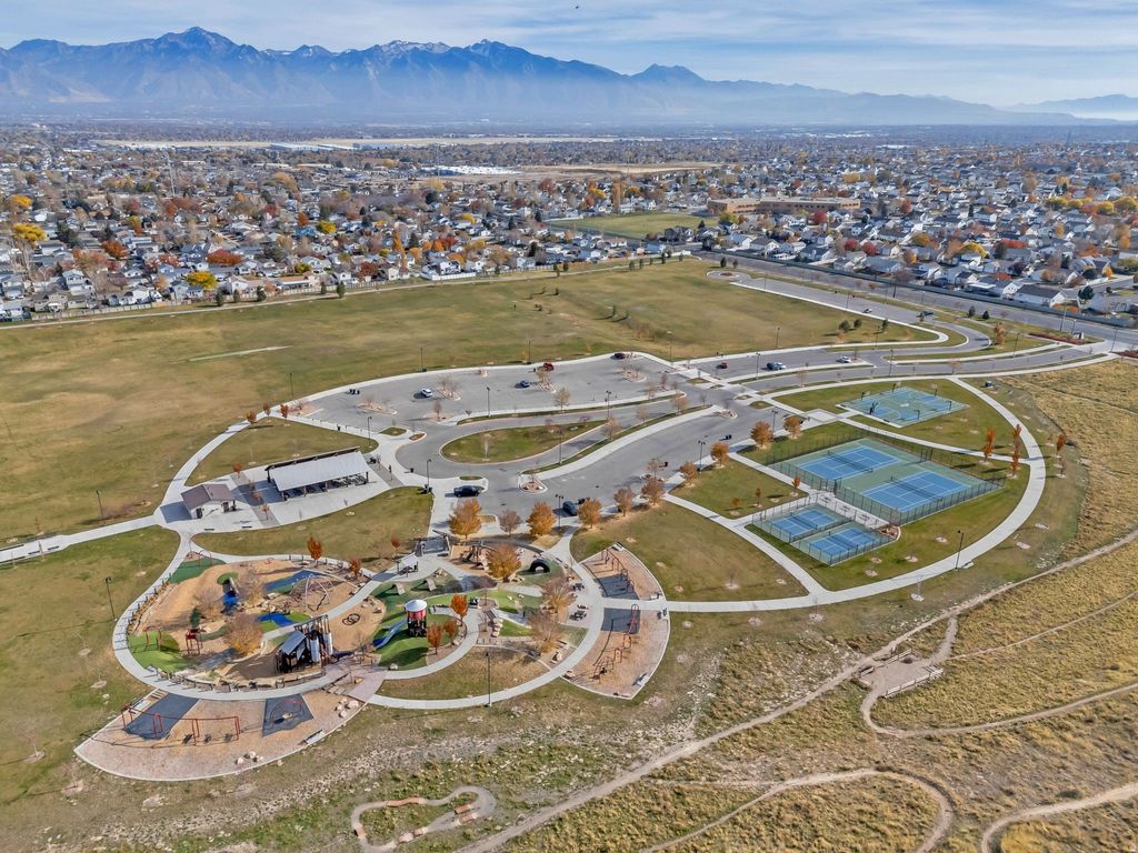 Nestled at the end of a quiet dead-end street, this beautifully updated home offers privacy, convenience, and unbeatable access to outdoor amenities. With a walking path directly behind the home, you'll never have backyard neighbors - just open views and peaceful evenings on your covered deck as you watch the sunset over the Oquirrh Mountains. Just steps from Lodestone Park, enjoy easy access to basketball, pickleball, and tennis courts, playgrounds, and pavilions - perfect for recreation and gatherings. Inside, you'll love the modern kitchen featuring crisp white cabinetry, stainless steel appliances, and sleek hardware. The home has been thoughtfully maintained and updated, including a new HVAC system and roof (2022), plus a washer and dryer that are just one year old. Google Fiber is already connected for lightning-fast internet. The spacious backyard offers a quiet retreat with plenty of room to relax, play, or entertain - the perfect balance of comfort and outdoor enjoyment in one of the area's most desirable locations. Homes in this location rarely come available - don't miss your chance! Schedule your private showing today and experience the perfect blend of privacy, style, and convenience.