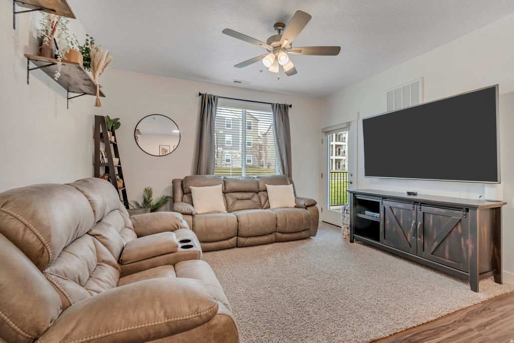 Skip the wait and step right into your brand-new home at Mountain Ridge, one of the area's most sought-after communities! This main-floor condo offers the perfect blend of comfort and convenience, featuring direct access from your own attached garage-a rare and highly desired feature in this neighborhood. Inside, you'll love the bright, open layout with 9-foot ceilings, abundant natural light, and modern, high-end finishes throughout. The spacious design offers plenty of storage and thoughtful details that make everyday living easy and enjoyable. This home is move-in ready and still covered under the builder's warranty, giving you peace of mind as you settle into your new space. Enjoy resort-style amenities including two clubhouses, a fully equipped fitness center, community pools, parks, and pickleball courts. Plus, you'll appreciate the unbeatable location with quick access to Mountain View Corridor and Bangerter Highway, making your commute and errands a breeze. Don't miss the chance to own this beautiful, newly built condo-the perfect combination of modern living, convenience, and community.