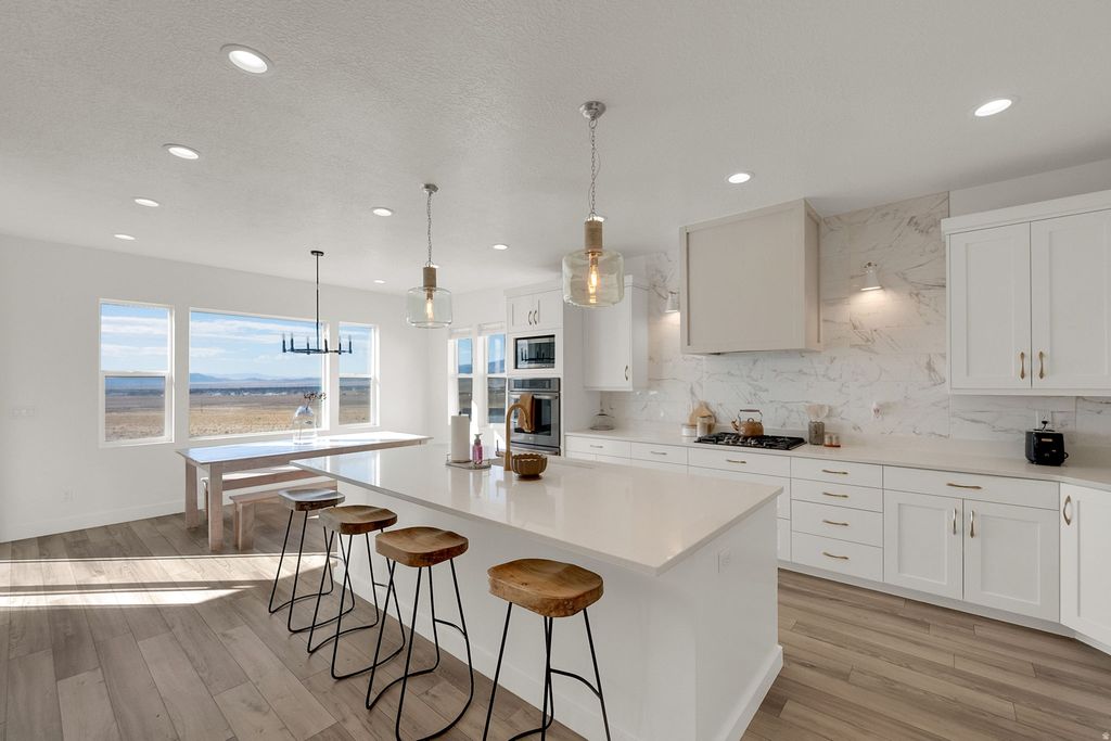 Discover luxury living with this warm and inviting modern farmhouse, perfectly situated on a sprawling 1-acre lot in the coveted Glenmar Ranches neighborhood. Nestled on a quiet cul-de-sac with no through traffic, this stunning single-family home offers unmatched valley and mountain views and the peaceful lifestyle you've been searching for. Featuring 4 bedrooms and 2.5 bathrooms, the home includes a beautifully appointed primary suite with a separate soaking tub and shower, dual sinks, and a massive walk-in closet. The heart of the home is the high-end gourmet kitchen, complete with a walk-through pantry with sliding barn doors, premium finishes, and an ideal layout for cooking and entertaining. Cozy up by the gas fireplace, or step outside onto the expansive covered balcony-perfect for taking in the panoramic scenery. The property is fully suited for horses, goats, or other small livestock, offering both flexibility and freedom. Additional highlights include a massive oversized 3-car garage, modern design elements throughout, and the charm of true farmhouse-style living blended with today's luxury comforts. A rare find in an exceptional location-this is the home that has it all.