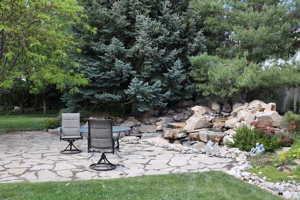 Open House Saturday, December 6th 12-2pm. Your adventure starts here! Must see this stunning professionally landscaped park-like .52 acre lot with waterfall, 19' x 15' pond, 28' x 26' gazebo, 22' x 29' patio, lush trees, shrubs and flower beds. Used as a wedding venue in the past. Chef's kitchen w/granite tops, 20" x 20" designer tile, tons of cabinets, stainless steel appliances, picture window, cherry mahogany wood floors, 2 fireplaces, 13' x 18' master suite with jetted tub, vaulted ceilings, with huge walk in closet and built ins. Flex space could be used for 6th bedroom. Too may extras too list!