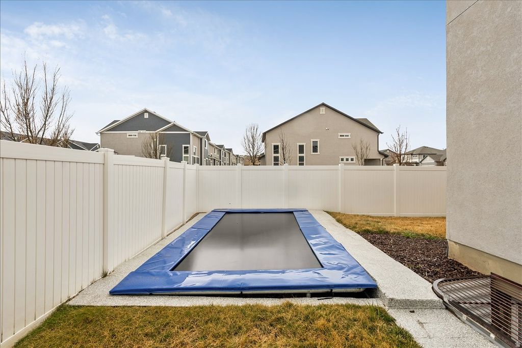 Welcome to the most upgraded and spacious home in Edge Exchange. This builder-customized property sits on the largest corner lot in the neighborhood and includes expanded square footage along with a unique west-facing wall with no windows for added privacy. Inside, you'll find a full theatre room that's already wired for a projector with in-wall and ceiling speakers. The basement lights are Alexa-controlled for easy automation. The finished three-car garage includes upgraded lighting, extra power outlets, and a custom gated cement pad that lets you store garbage cans outside while still staying fully HOA approved. The backyard features the only HOA-approved in-ground SkyWalker rectangular trampoline along with a low-maintenance yard that's professionally serviced twice a month. This home also comes with FREE GIGABIT INTERNET, (by Xfinity) which is exclusive to this property and perfect for streaming, working from home, and running smart devices. The location is surrounded by convenience. A school bus stop is directly across the street with access to North Point Elementary and two Accent Academy locations. You're just minutes from Thanksgiving Point museums and gardens, the new Costco, a wide variety of restaurants, and access to the Jordan River paved trail and Olympic Park. With its long list of upgrades, premium features, and ideal location, this home is move-in ready and truly stands out in the community.