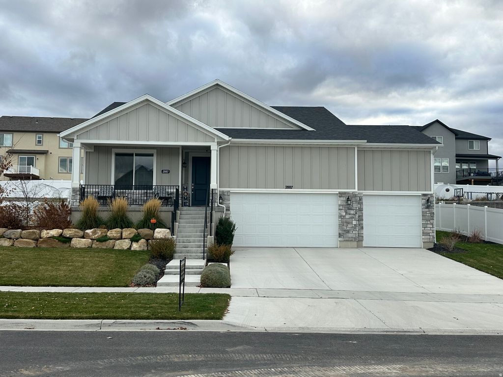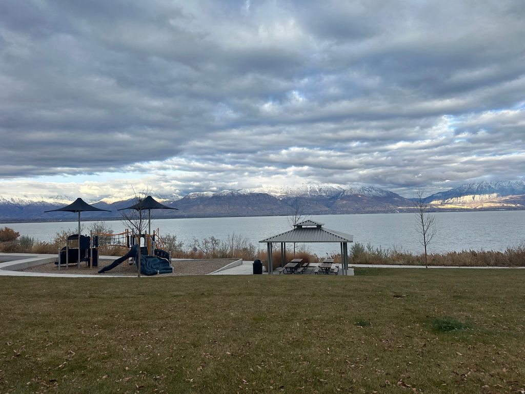 LIVING LAKE SIDE IS POSSIBLE IN UTAH! You Found It! **Enjoy & play on a fun dock being added to the neighborhood, Yayy! Relax on a your front porch, overlooking AMAZING Mt/Lake VIEWS, a cute park/play ground/pavillionjust kiddy corner across the street, w/ extra parking for your guests! Walking trails throughout development! **Light, bright, open main floor w/sep master suite on one side of the home w/soaker tub/shower/double vanity & spacious walkin closet. The other bdrm/full bath, entry den (or additional bedroom, could easily add a closet) is situated on the other side of the home. (perfect for guests) **Open kitchen/dining/ familyroom w/ lrg island, gas fireplace, builtin side cabinets. (This comfy room is so inviting) Lite & open basement is BRAND NEW, never been lived in... just finished three months ago offering three bdrms/full bath/Huge family/game room w/wet bar, its ready for you to enjoy! 3 car garage. *The yard is perfectly designed w/open flat lawn space, terrance up back yard (impressive!) w/ a custom pergola covered patio off the dining slider (Enjoy) Several wonderful planter boxes for all things yummy & pretty, all established with a variety of different yummy berries, fruit trees, (green thumb ready) & impressive rocked out areas. Wonderful firepit/2nd pergola & benches w/ more amazing lake & Mt views! All fenced, turnkey, & maintaned to perfection! Don't miss this great find & package!! Buyer to verify all information provided.