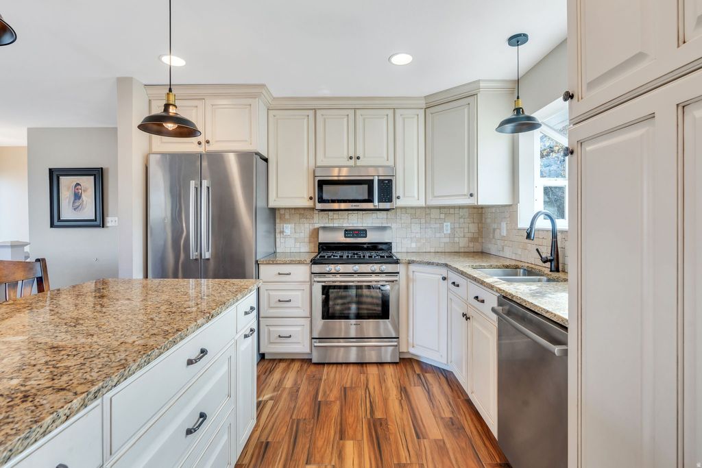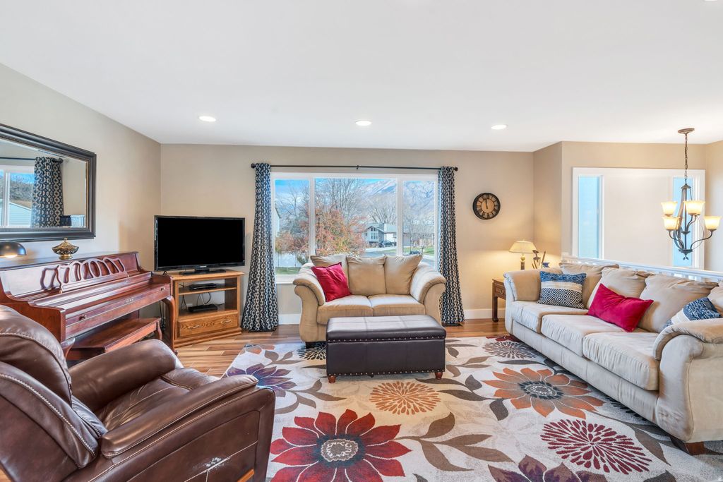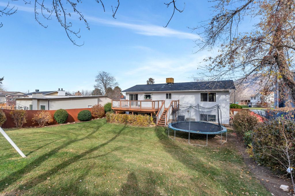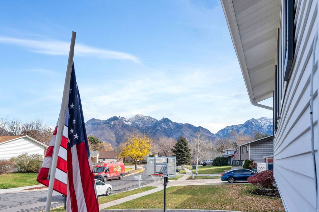 This home has been lovingly cared for over the years with thoughtful upgrades inside and out, offering both comfort and functionality. Located in a quiet, established neighborhood, enjoy peaceful living with quick access to schools, shopping, trails, and the mountains. Beautiful landscaping and raspberry bushes surround the property. Enjoy stunning Wasatch mountain views that change with every season. Fully fenced yard and large deck! The remodeled kitchen offers modern finishes and a functional layout. The bonus room in the basement adds flexibility and has the potential to be converted into a fourth bedroom, home office, or additional living space.