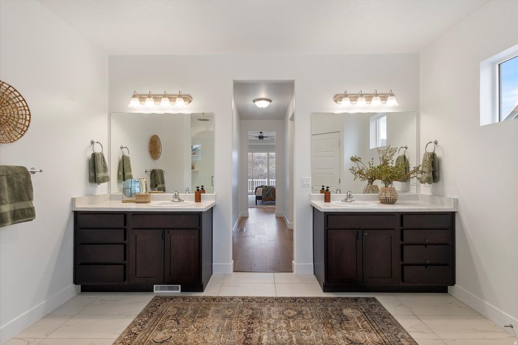 This SunCrest home sits on a flat, fully usable .44-acre lot with no back neighbors, offering rare privacy, open views, and hard-to-find yard space. Inside, the main level features a custom kitchen with upgraded cabinetry, a hidden butler pantry, and luxury finishes throughout. The living and dining areas include a fireplace and built-ins, and a large mudroom adds everyday functionality. The home offers 6 bedrooms and 4.5 bathrooms, laundry on every floor, and an upstairs ensuite bedroom. The fully finished basement adds even more flexibility with a second kitchen and separate exterior access. An oversized back deck overlooks the private yard and open space behind the property. Located within walking distance of the Peak View Trailhead, this home combines privacy, upgraded living, and access to Draper's trail systems and amenities.