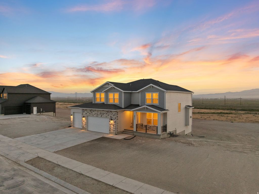 AMAZING $25,000 INCENTIVE TOWARDS CLOSING COSTS, RATE BUYDOWN, OR PRICE REDUCTION REGARDLESS OF LENDER! Must-see Scarlet Ridge Community in Eagle Mountain! Move-in ready! This beautiful home on a three-quarter-acre view lot with a walk-out basement is built by Flagship Homes. It features 4 bedrooms, 3.5 bathrooms, quartz slab countertops, painted cabinets, laminate flooring on the main level, a large loft on the 2nd floor, landscaped front yard, a 3 car garage with a convenient Costco Door between garage and pantry, and backyard (can be landscaped for an additional charge). The primary bedroom has a vaulted ceiling, large walk-in closet, and dual sinks with a separate tub/shower. With an unfinished walk-out basement, this home provides space for storage and room to grow. (If preferred, basement can be finished for an additional charge.) 1GB fiber optic internet included in the HOA dues. Call for more information or stop by our model home at 1546 E. Starling Lane, Eagle Mountain for a tour. Model home hours: Monday-Saturday 11 AM - 6 PM. Buyers to verify all information. Square footage is from house plan
