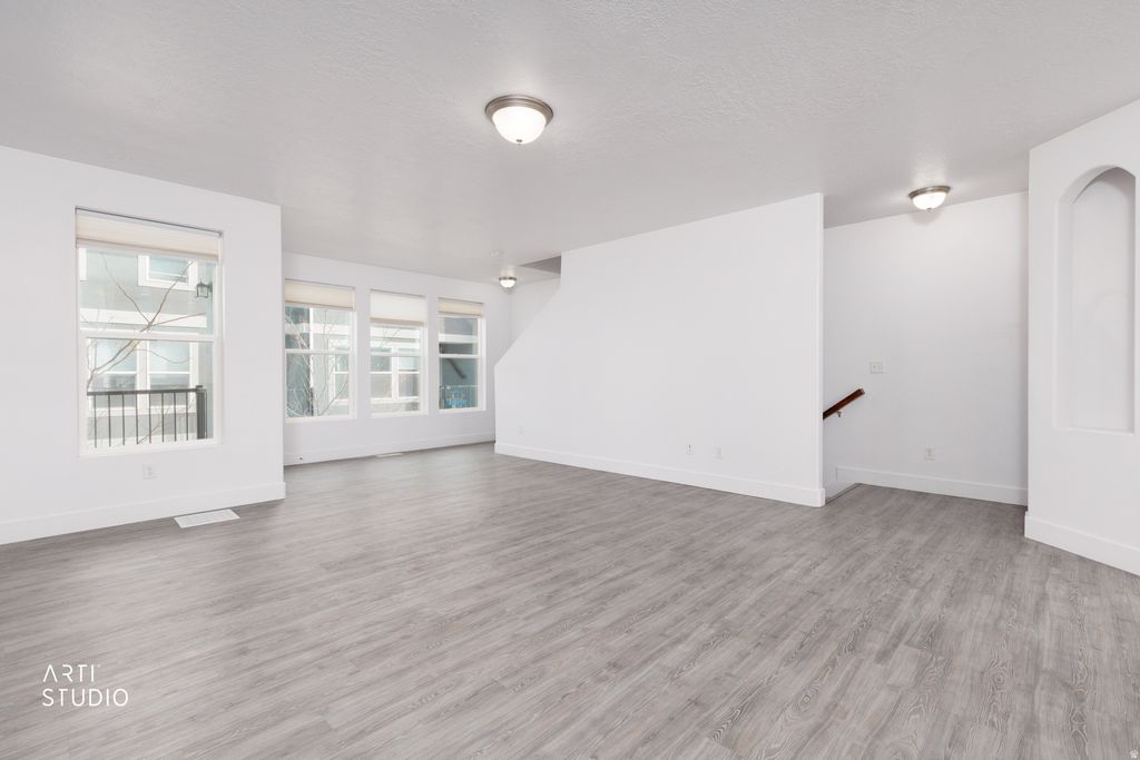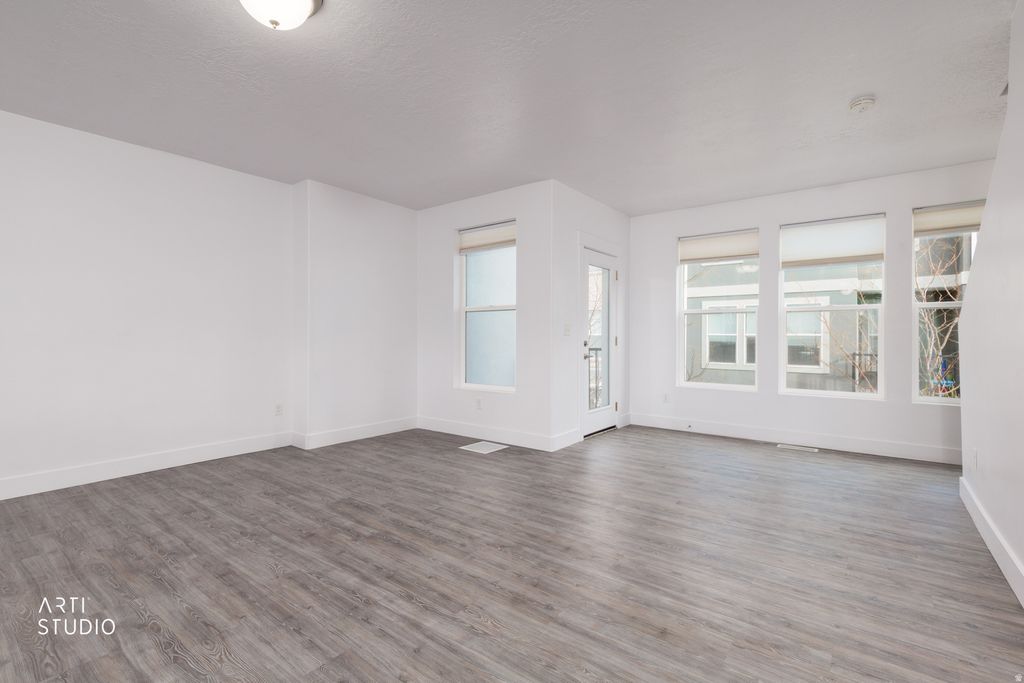 Come home to this open and inviting townhome bathed in natural light, fresh and clean. The vaulted ceilings and no back neighbors make it extra special. The triple pane windows provide peace & quiet. Awesome location in proximity to the Bangerter and Redwood Rd. Your covered balcony and large front courtyard provide outside space to relax and entertain. This unique townhome has the advantage of the park in back that is accessed easily from the garage. High speed fiber optic. Internet included with HOA fee.