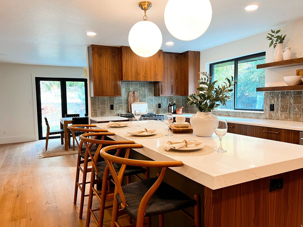 Thoughtfully remodeled rambler in Cottonwood Heights with gorgeous mid-century modern details. Renovated from top to bottom, this home features a new roof, windows, custom front door, and tri-fold fully opening glass doors in the back. The kitchen offers walnut cabinetry, a large island, Kitchenaid and Zline appliances, double ovens, and double refrigerators. Main floor living is possible, complete with laundry hookups in the primary bedroom. The entire home has new LED lighting, paint, flooring, and bathrooms. A new furnace, A/C and water heater were installed in 2024. The spacious basement includes a home gym, office, and a large family room with wet bar. A second laundry/hobby room and dedicated storage provide practical functionality. With an ideal location just minutes from Big Cottonwood Canyon and within walking distance to the grocery store, this is a must-see! Square footage figures are provided as a courtesy estimate only and were obtained from county records. Buyer is advised to obtain an independent measurement.