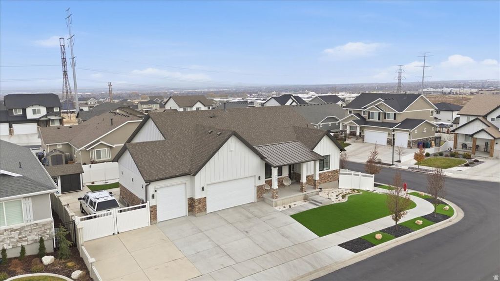 Discover a home where luxury, space, and effortless living come together, welcome to a residence that feels more like a private retreat. This stunning 6-bedroom, 4.5-bath estate has been kept in pristine, immaculate condition, offering a level of care and detail that's rare to find. As you enter, the soaring vaulted ceilings elevate the entire atmosphere, revealing an open, elegant layout designed for both grand entertaining and comfortable everyday living. Step outside to an expansive elevated deck, perfect for sunrise, dining, gatherings, or quiet moments overlooking your beautifully manicured yard. The exterior is fully landscaped with premium turf, giving you a lush, green oasis year-round meaning no mowing, no maintenance, just pure enjoyment. Did I mention there's solar? Yes! You can save on your utilities bill! The lower level features its own private entrance, kitchen, separate laundry hookups, creating endless possibilities: a luxurious mother-in-law suite, long-term rental opportunity, or a separate haven for guests which is truly a home that works for you. A spacious 3-car garage plus additional parking for multiple vehicles ensures convenience without compromise. All of this is tucked within a peaceful, quiet West Jordan neighborhood just 2 minutes from grocery stores, dining, and essentials. Residents of this community also enjoy access to an exclusive clubhouse, pool, picnic areas, and playground, adding to the resort-style lifestyle this home delivers. Every detail is done. Every upgrade is in place. This is a home you step into and instantly feel the difference.