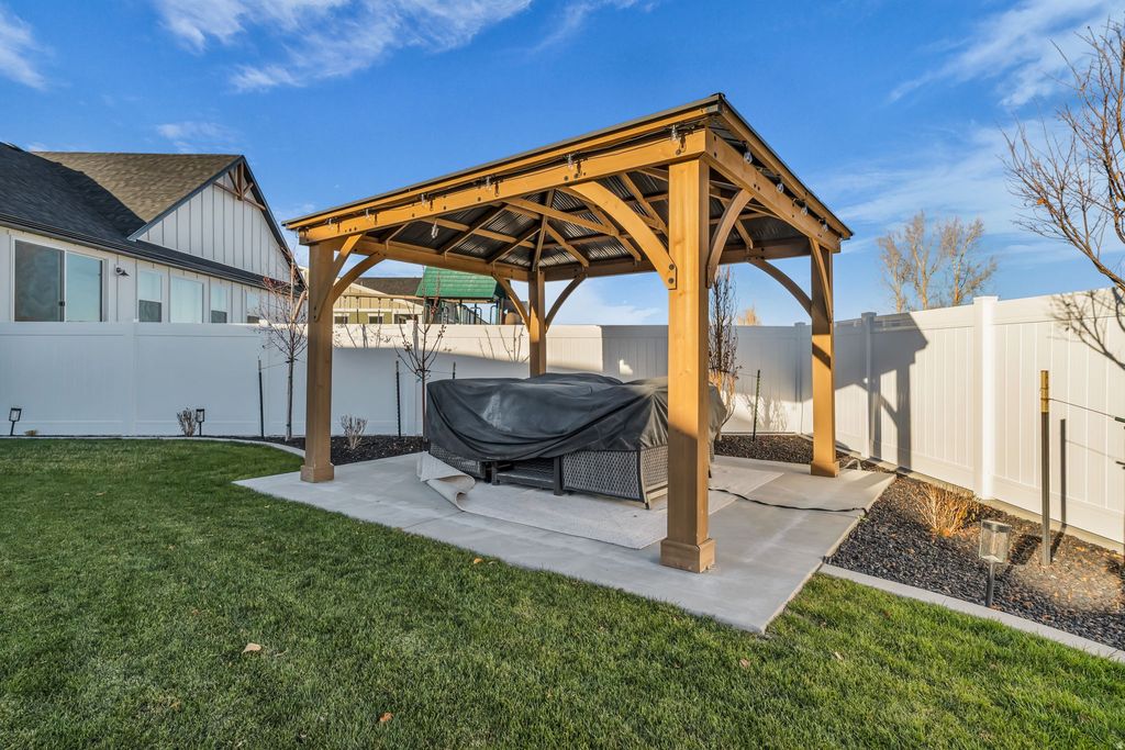 Discover your dream home featuring a wealth of upgrades and a separate Accessory Dwelling Unit (ADU)! This stunning property combines luxury and functionality with an independent HVAC system, water heater, and water softener in the ADU. Inside, you'll find premium carpet and upgraded luxury vinyl flooring, along with extra blown-in insulation between the ADU and main house for enhanced energy efficiency. The massive RV parking pad and durable epoxy floors in the garage provide ample space for vehicles and storage. Enjoy modern living with smart home technology, including a wall-mounted iPad for seamless control of your home network, motorized smart silhouettes throughout, and bidet toilets in all bathrooms for added comfort. The smart bathroom features precise temperature control for showers, creating a spa-like experience. Step outside to your brand new backyard, complete with a charming gazebo and a convenient storage shed. The custom-built entertainment system in the spacious living room is perfect for gatherings, and the home is pre-wired for a hot tub in the backyard, ideal for relaxation. Located in a desirable neighborhood with easy access to local amenities, parks, and schools, this exceptional property is perfect for families and entertaining. Don't miss your chance to make this luxurious home yours-schedule a viewing today!