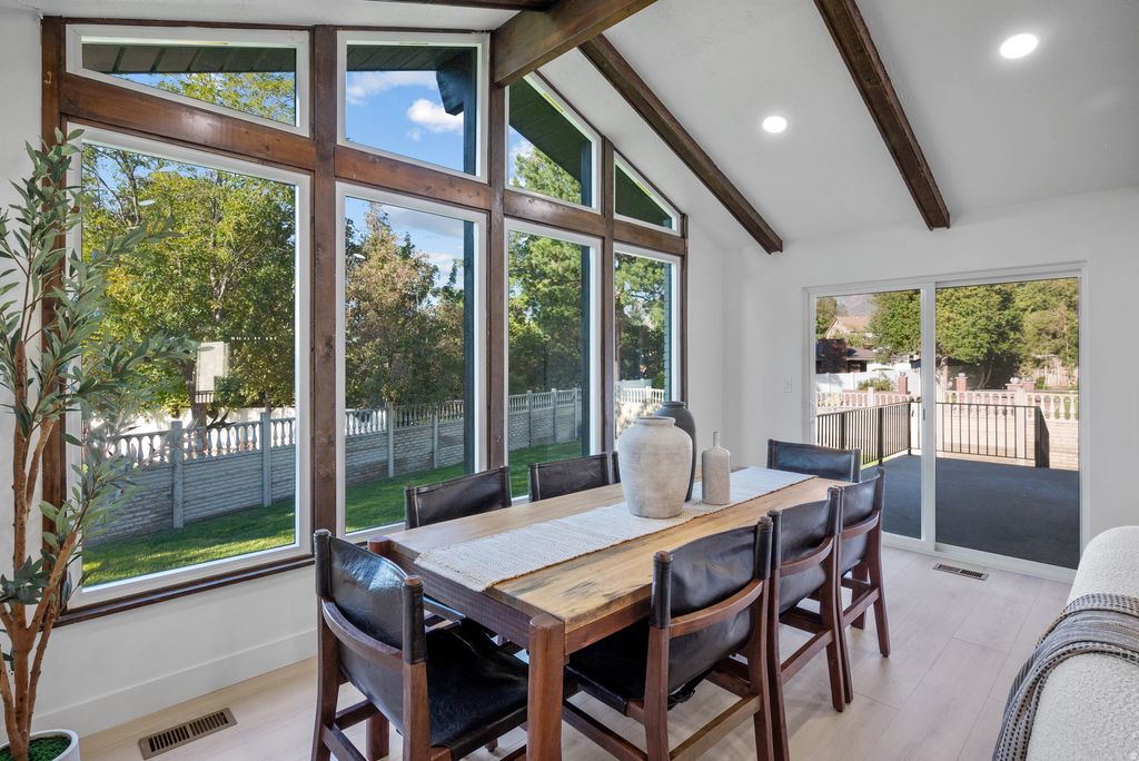 This stunning, fully renovated home is located just minutes from the prestigious Willow Creek Country Club, nestled in one of the most desirable pockets of the Salt Lake Valley. With breathtaking mountain views, a spacious layout, and designer finishes throughout, this property is a rare find. Boasting over 4,000 square feet, the home features six bedrooms, including a fully finished basement with a separate kitchenette, perfect for entertaining, extended guests, or multigenerational living. The heart of the home is an expansive great room with soaring ceilings and exposed beams, creating a dramatic and inviting space for gatherings. The kitchen is one of the largest you'll find, completely reimagined with luxury in mind and equipped for everything from quiet mornings to hosting a crowd. A spacious butler's pantry offers added storage and prep space, ideal for those who love to cook or entertain. Step outside to enjoy a lush green yard with room to relax, play, or garden, all surrounded by mountain beauty. Opportunities like this in the Willow Creek corridor are rare. Schedule your private showing today.