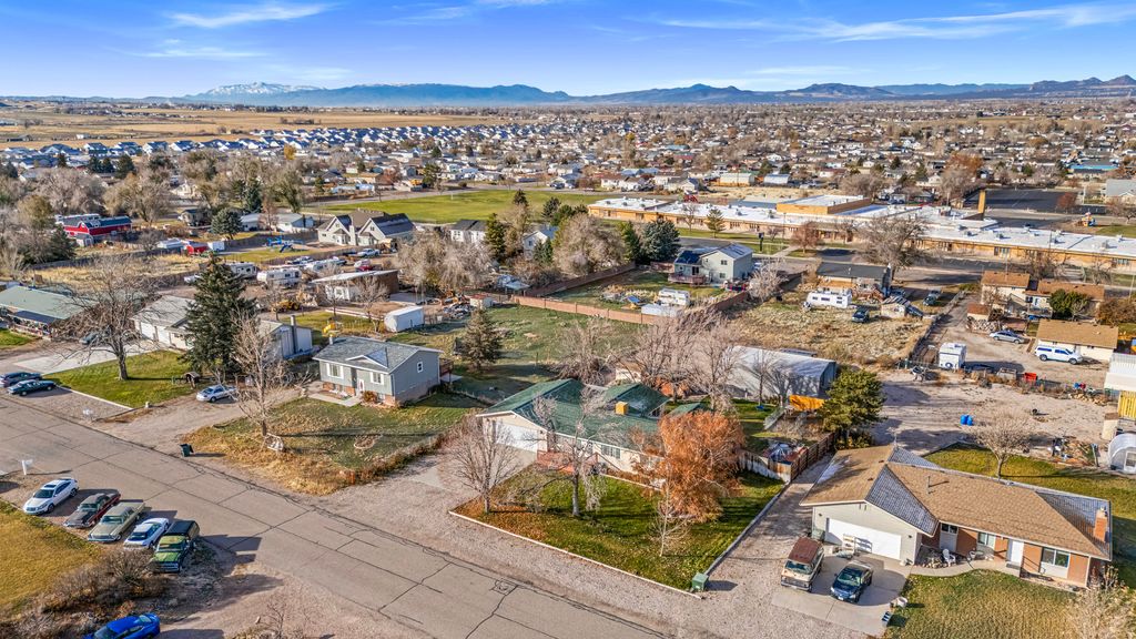 Welcome home to this charming four-bedroom, three-bath home nestled on a beautifully landscaped half-acre lot. You will fall in love with cozy, homestyle atmosphere. The open concept great room and multiple darling patios offer perfect options for morning sunrises and evening relaxation. Outside, the property is a powerhouse of utility and enjoyment, boasting a hot tub, garden space, multiple barns, sheds, and an open-ended 40' garage large enough for an RV. There is no shortage of parking space here! With a prime location near the elementary school, this unique property combines the quaint aesthetic you want with the storage and land you need.