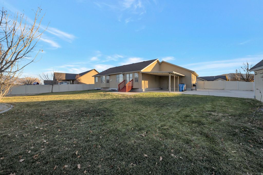 Beautifully upgraded rambler on a large, fully fenced lot with extensive RV parking and an extra-deep 3-car garage, including an additional detached garage in the back. Enjoy a spacious main-level living layout with the primary bedroom on the main floor and large family rooms both upstairs and down. The kitchen features alder cabinets, a raised butterfly bar that seats up to six, and an open feel perfect for gatherings. The basement is fully finished with oversized bedrooms and abundant storage. Outside, you'll love the covered patio, garden area, and mature fruit trees. Quiet neighborhood with parks and open space nearby. No HOA. Water softener and water heater installed just 2 months ago. Plenty of room for all your toys, boats, trailers, RVs, and more. Close to schools, shopping, and conveniences. Easy to show.