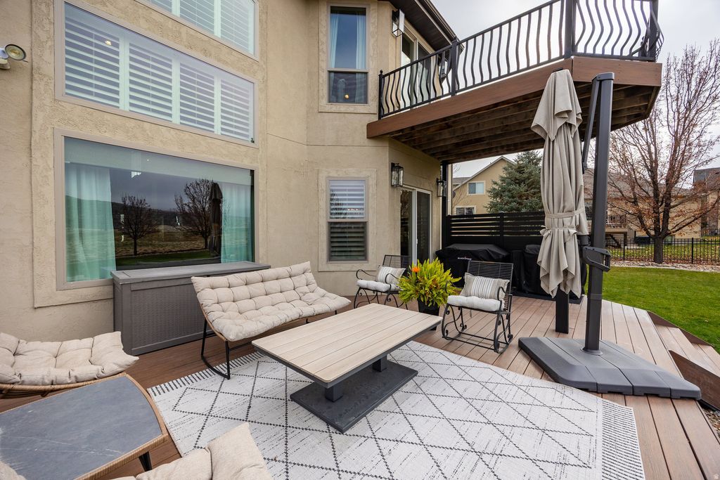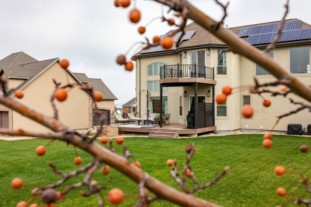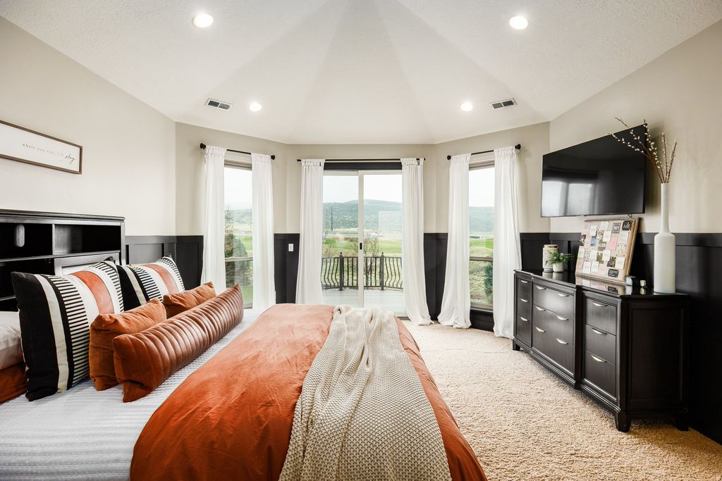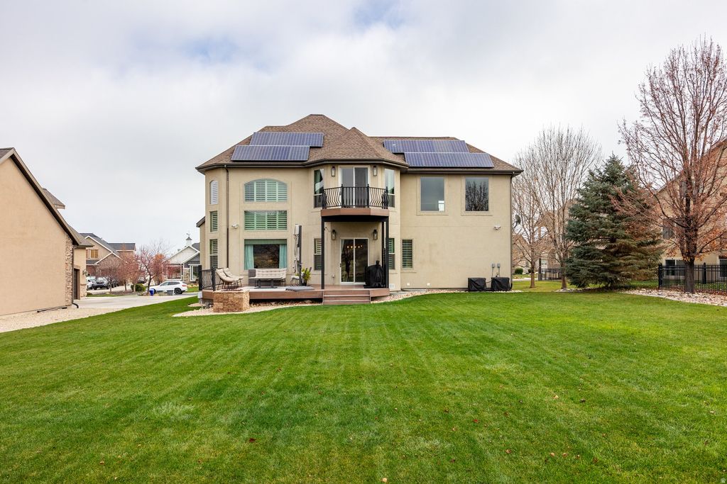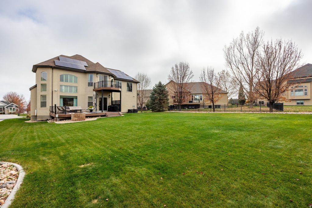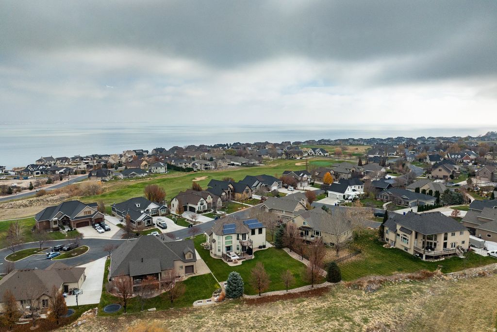 Privately positioned on a quiet cul-de-sac and backing Talons Cove Golf Course, this residence offers nearly 4,300 square feet of well-designed living space on a .40-acre lot. The light-filled main level features an open, functional layout ideal for both daily living and entertaining, while the grand primary suite is located upstairs and includes its own private balcony. The fully finished basement adds four additional bedrooms and three bathrooms, a second living area, creating flexible space for guests, work, or multi-generational living. Above the large three-car garage is a versatile flex/theater room, perfect for movie nights, a game room, or creative use. The backyard opens to sweeping fairway views with no rear neighbors, offering both privacy and a peaceful setting. Located in one of Saratoga Springs' most desirable pockets, this home also offers convenient access to schools, parks, and Utah Lake.