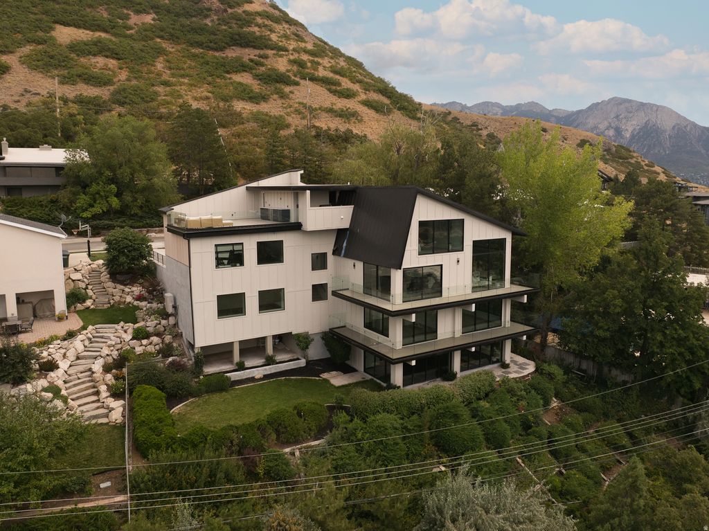 Set above the city on a quiet Salt Lake hillside, this newly completed 5,557 square foot residence captures the full sweep of the valley from sunrise to skyline. Four levels of meticulously crafted living space create a modern sanctuary where design, light, and landscape work in complete harmony. The main floor unfolds into an open concept great room with walls of glass that dissolve the boundary between indoors and outdoors. A sculptural quartzite kitchen serves as the centerpiece, appointed with Wolf and Sub-Zero appliances and designed for both everyday ease and elevated entertaining. Every finish has been chosen with intention, creating an atmosphere that feels refined, warm, and distinctly contemporary. Four bedrooms and five beautifully designed bathrooms offer privacy and comfort on every level. The lower floor includes a dedicated home gym, sauna and a temperature-controlled wine cellar. The rooftop deck becomes the home's signature experience, offering a private hot tub and uninterrupted views that stretch across the entire Salt Lake Valley. This is more than a newly built residence. It is a fully permitted architectural achievement in one of Salt Lake's most scenic and coveted locations, created for those who value craftsmanship, clean modern lines, and a lifestyle defined by exceptional views.