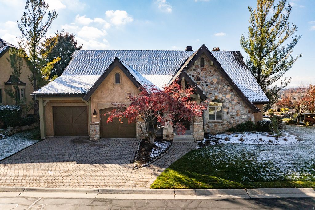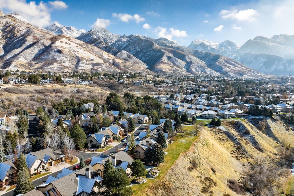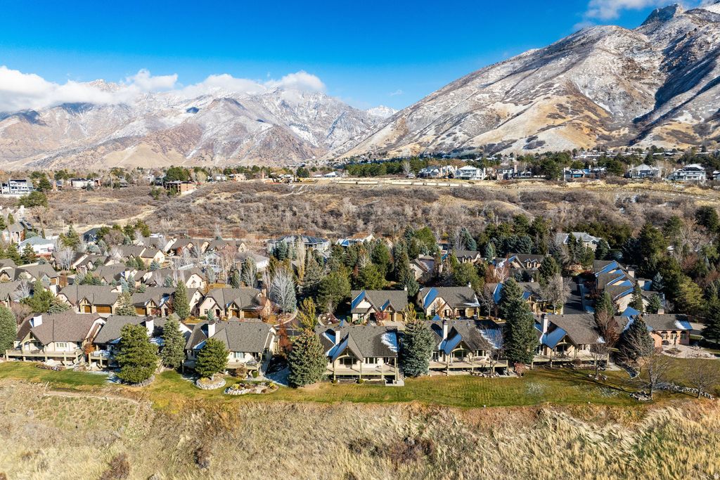 Boasting unmatched Wasatch and fairway views, this residence is perfectly positioned within the quiet, gated community of Monte Luca, where mountain living meets refined modern comfort. Surrounded by mature landscaping, water features, and dramatic natural scenery, the home offers immediate access to the outdoor lifestyle that defines Cottonwood Heights-just minutes from Big and Little Cottonwood Canyons, four world-class ski resorts, and miles of mountain biking and hiking trails. Thoughtfully finished with high-end upgrades-including wood-beam vaults, a custom-designed study, granite counters, and premier appliances-the interior blends craftsmanship with warmth and livability. Expansive windows and inviting outdoor spaces frame picturesque views of the Willow Creek Country Club, creating a seamless connection to the lush fairways and nearby foothills. Residents of Monte Luca enjoy a million-dollar clubhouse, security gates, and beautifully maintained grounds, all contributing to a lifestyle that balances serenity, recreation, and the unmistakable energy of Wasatch mountain living.