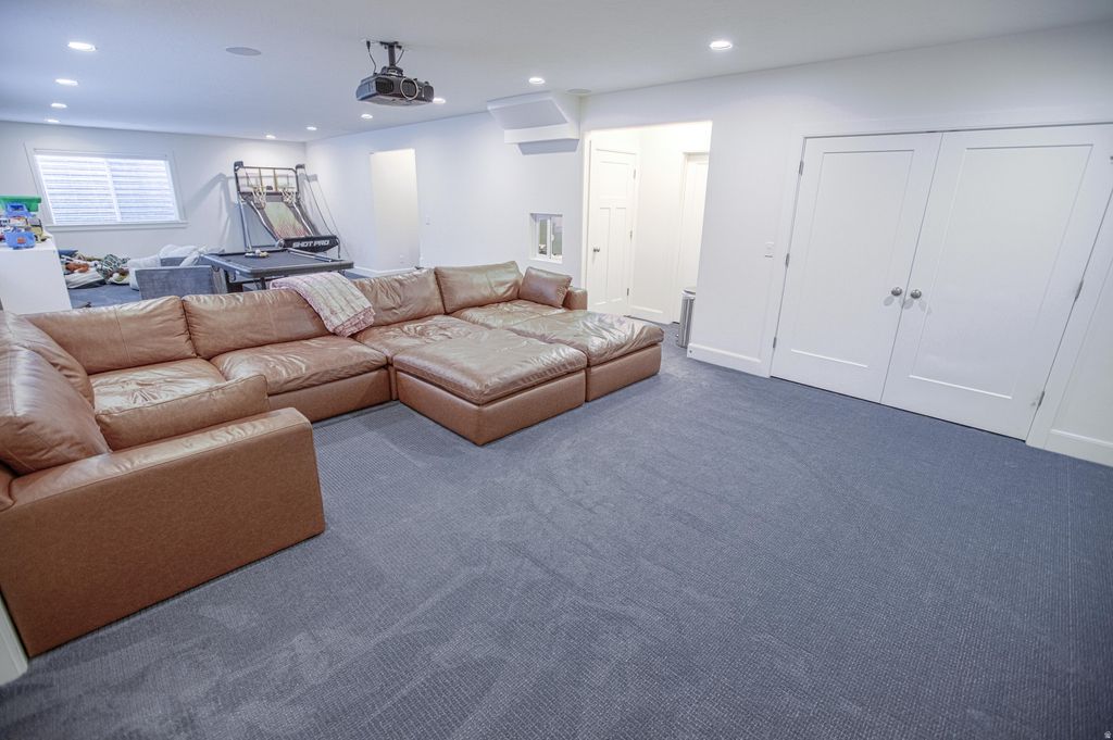 Recently appraised at $1.278M. An exquisite custom modern farmhouse in one of East Lehi's most coveted neighborhoods, gracefully bordering Highland. Impeccably designed with an open, light-drenched floor plan and meticulous attention to every detail. Freshly refined with new luxury waterproof carpet (downstairs) and new plush high-grade carpeting throughout the main level, complemented by a complete designer paint refresh. The heart of the home is a breathtaking chef's kitchen, perfect for effortless entertaining. Downstairs, a sprawling 1640+ entertainment wing features a professionally built theater equipped with Klipsch 7.1 surround sound and an Epson 2K cinema projector (all included). Enjoy rare .43-acre grounds with ample space for a resort-style pool, sport court, or guest house. A virtually invisible, impeccably designed 1-bedroom mother-in-law ADU currently generates $1,350/month with zero vacancy and a tenant eager to stay, offsetting your mortgage or funding future enhancements. Additional highlights include an oversized FOUR-car garage with room for all your toys. Timeless elegance meets modern income-producing luxury, schedule your private showing today. Owner/agent.