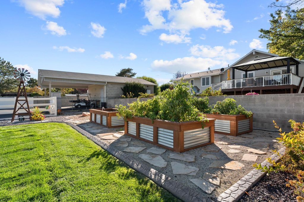 Every detail of this beautiful home on 1.11 acres is meticulously maintained, and a perfect blend of smart function and fun living! Perfect spaces for indoor and outdoor living, plus a blend of country and city vibes. Walk into the beautiful vaulted ceilings with a floor-to-ceiling fireplace. Upgrades include a new roof in 2019, owned solar, a whole-house fan for seasonal comfort, plantation shutters, and LED lighting throughout. Outdooor amenities include a wrap-around Trex deck, fully fenced yard, garden boxes with irrigation, plus pressurized sprinklers and flood irrigation. Gazebo, swing set, and abundant play area. Next: if you have always wanted to build the custom garages of your dreams, they are ready for you! Details of garages: Front 24' x 24', solid cinder block construction with a 24' x 20' canopy off of the back. Back garage: 34' x 34' an absolute showpiece fully finished with attic storage, insulation, and heating, Epoxy flooring and insulated 18' x 10' door, additional insulated roll-up for ventilation, 240 -volt 50-amp Nema 6-50R receptacle for a welder and another for an air compressor, stainless steel workbench and premium cabinets, JBL ceiling-mounted speakers, TV, LED lighting with dimmers, and dual fans, optional four-post cr list and compressor available separately. Here is the house that well-maintained, like you take care of yours!