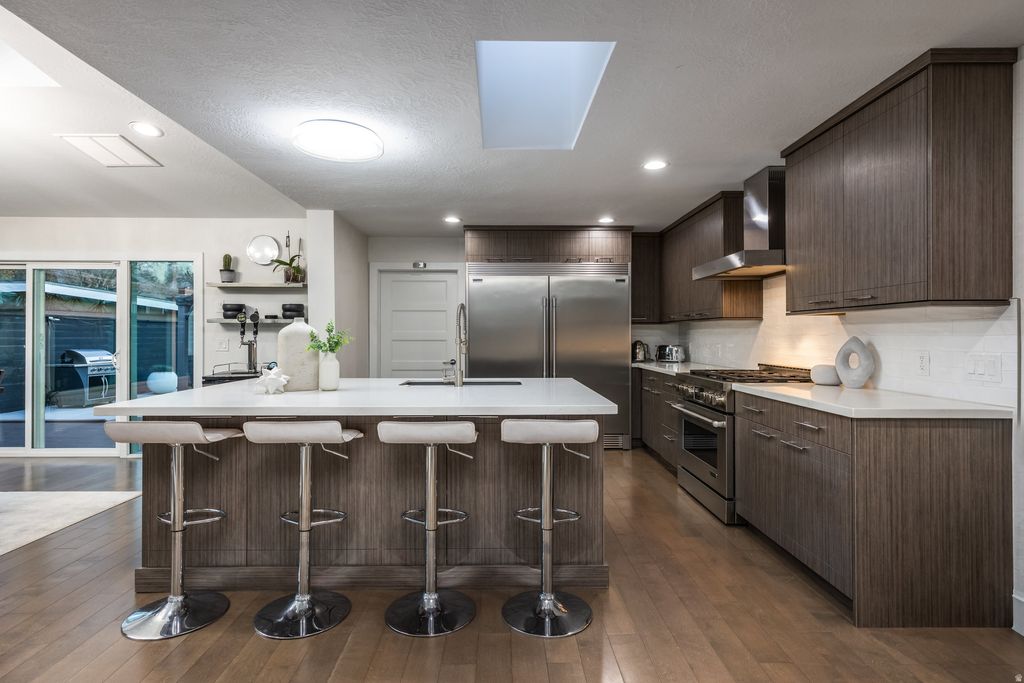Gorgeous, modern single-level living in the heart of Holladay. Clean, crisp, stunning. Open concept floor plan with an abundance of natural light throughout. 3 bedrooms plus an inspiring office, chef's kitchen, quartz countertops w/ ample counter-space. Primary suite includes spacious double vanities and a dreamy walk-in closet. The indoor/outdoor living and entertaining here is also amazing, with several patios & decks, professionally designed landscaping and a fully fenced private oasis with views of Mt Olympus. And to top it all off, the very rare 4-car garage plus RV parking makes it the perfect home for the buyer with multiple toys or vehicles. Your ticket to serene living is here.
