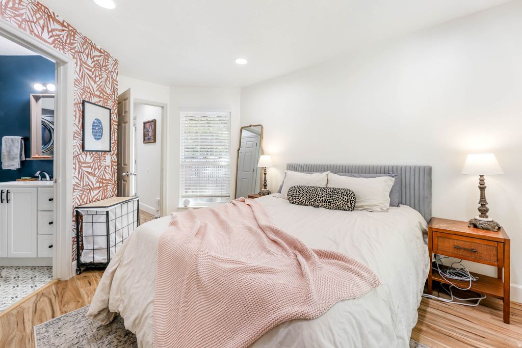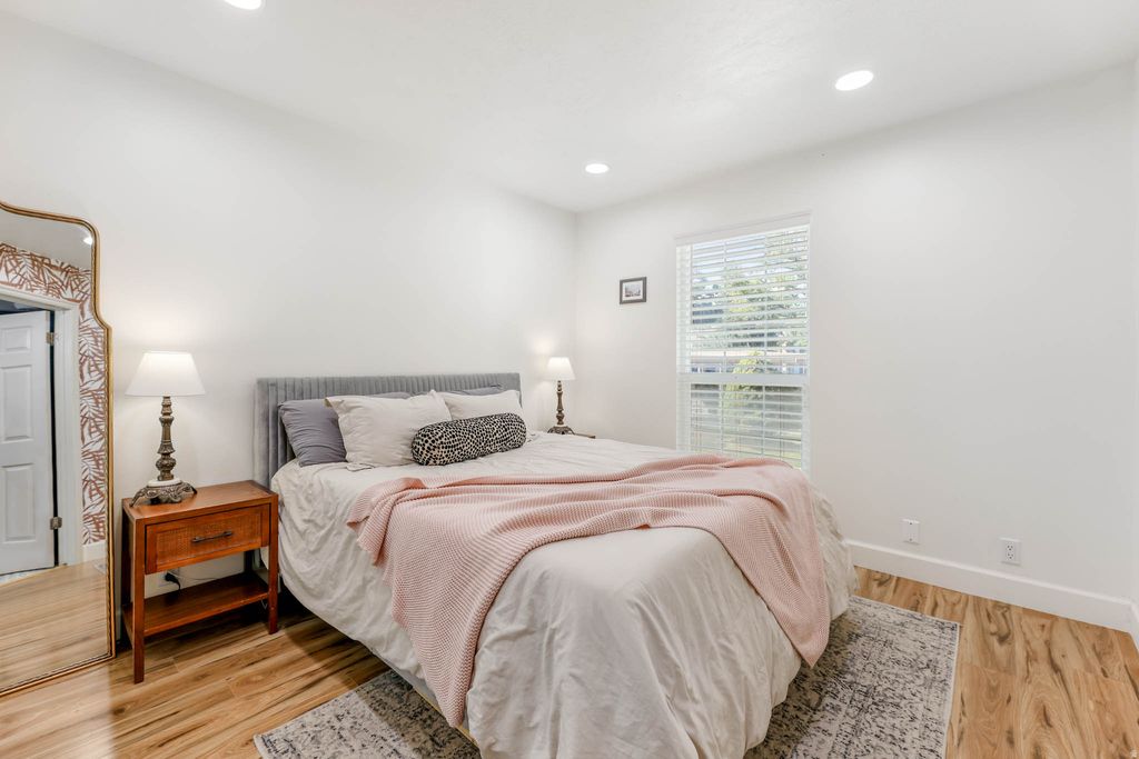Beautifully maintained 1-bedroom condo in the heart of Taylorsville. Features an open layout with wood-style flooring, granite countertops, and stainless steel appliances. The spacious bedroom includes a walk-in closet and updated ensuite bath with laundry. Enjoy a private fenced patio, vibrant exterior, and community amenities with mature trees and covered parking-all in a convenient location near parks, shopping, and commuter routes.