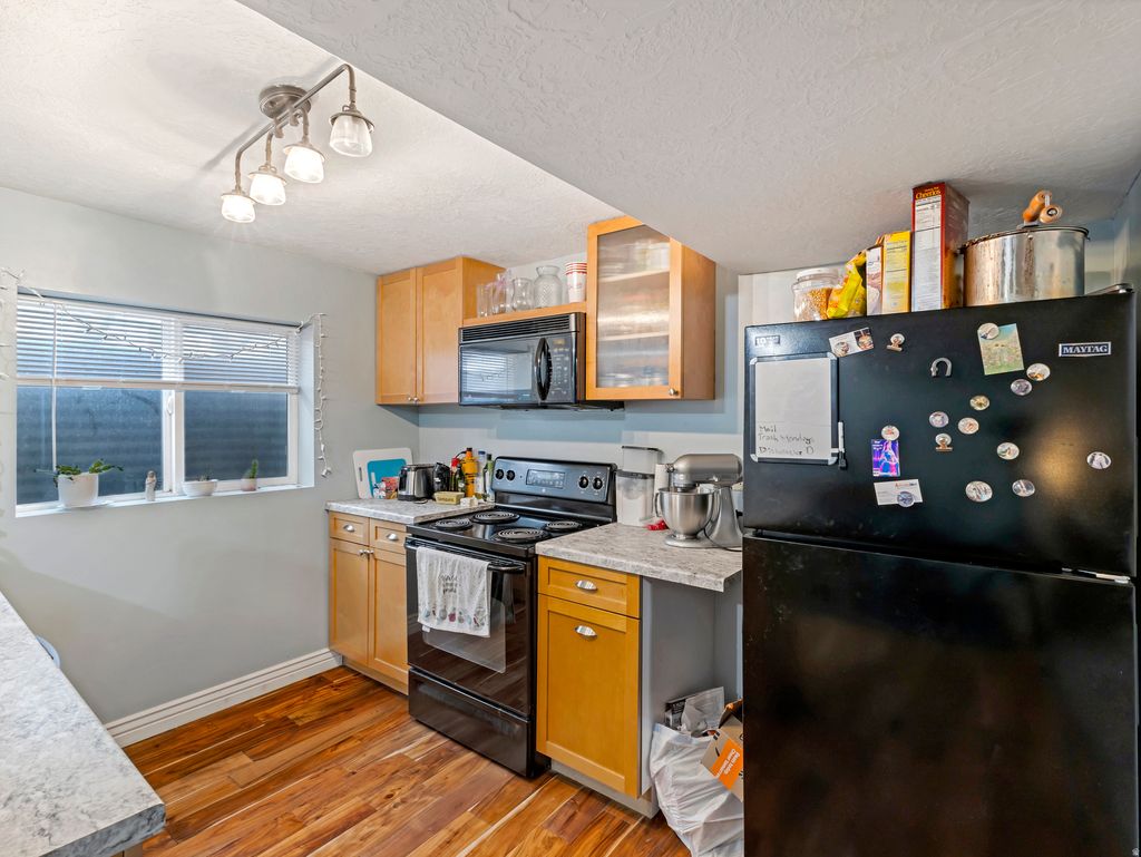 This all brick rambler sits on a corner lot and offers incredible flexibility for homeowners and investors alike. Enjoy a welcoming front patio, a fully fenced backyard, and a large yard with a sprinkler system, perfect for entertaining, relaxing, or having room to roam. Plenty of parking adds to the convenience, including ample side parking suitable for an RV or multiple vehicles. Inside, the updated main level features hardwood flooring, a modernized kitchen, and an inviting gas fireplace that anchors the living space. Glass sliding doors open to the backyard, creating easy indoor-outdoor flow. The primary bedroom includes an updated 3/4 bath, and the layout is functional and comfortable for everyday living. The basement offers excellent flexibility and can function as a private ADU. With its own exterior entrance, separate kitchen, spacious living room with a wood burning stove, two additional bedrooms, and ample storage, it can be used as a rental or seamlessly incorporated into the main home. An interior access door allows flexibility either way. Laundry is available on both levels. The home is currently rented. Lease information is available upon inquiry with the listing agent.