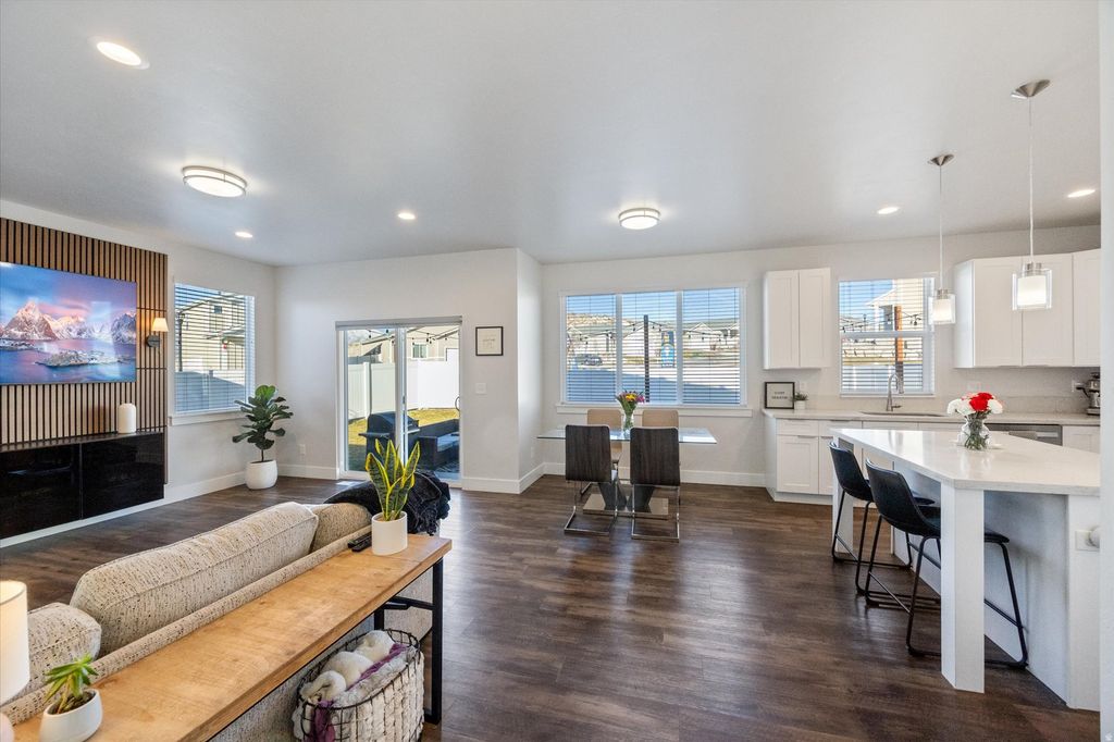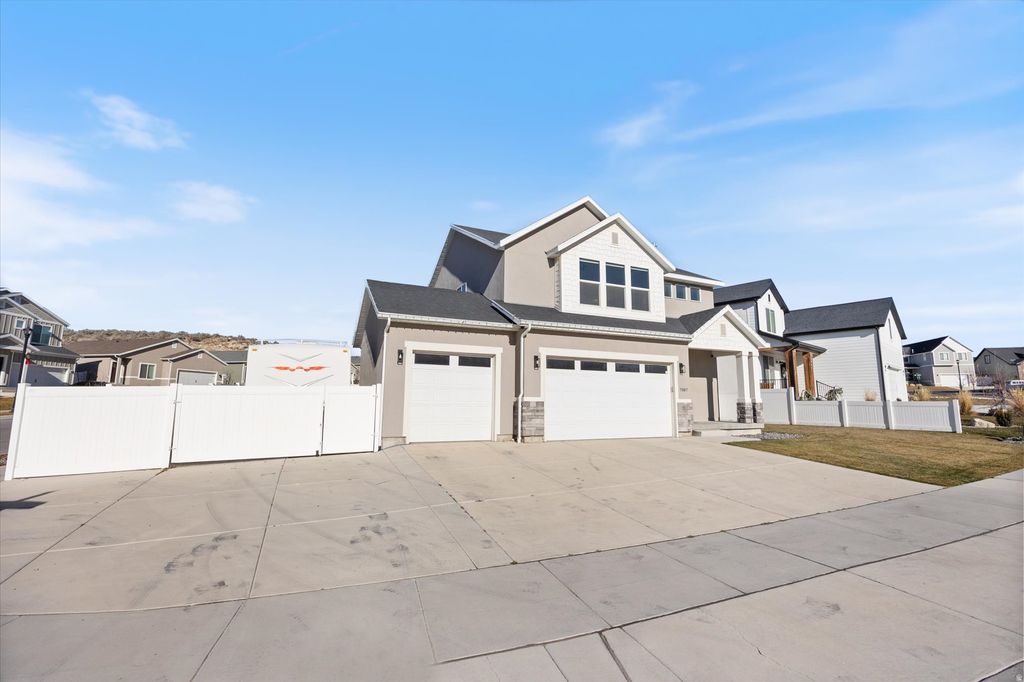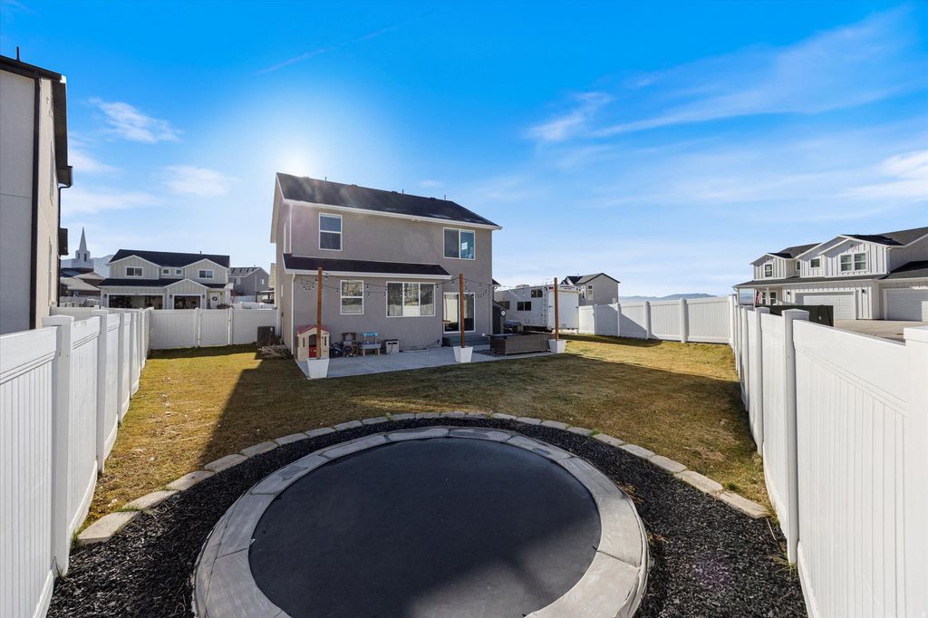 Better than new home in Eagle Mountain! This gorgeous home is move in ready and needs nothing. Why spend thousands on finishing a basement, putting up a fence, landscaping and RV pad and gate, when you can buy a home that has all of that! Perfect for the buyers with toys, this home features a 3 car garage and an RV pad and gate all on a private corner lot! Inside you will be delighted with the open floor plan, quartz counter tops, stainless steel appliances and LVP flooring. Large master features a huge master bath with separate shower and soaker tub. Recently finished basement has a full bath, 4th bedroom and family room. The back yard is finished and ready for your kids to play in with the in ground trampoline. You and your family will love this home! ( TVs in Family room and Master stay along with the fridge washer and dryer )