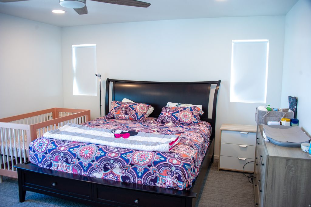 Situated just steps from Early Light Academy and the new Ballpark Stadium a short stroll away, this exceptional 5 bedroom, 3.5 bathroom contemporary-style home in Daybreak offers the perfect blend of luxury, space, and convenience. This beautifully designed residence features 2 spacious living rooms plus an upstairs loft, a modern kitchen with high-end appliances and dimmable lighting throughout, and a massive west-facing balcony showcasing breathtaking mountain views and sunsets. The home sits on a corner lot with an expansive backyard, privacy fence, and includes smart home technology with smartphone-enabled lighting and locks, solar panels to virtually eliminate your power bill, and a whole-home water softener with under-sink RO filter. Located within a 7-minute walk to the TRAX station (connecting you to downtown Salt Lake and the University of Utah) and minutes from Smith's Marketplace, WinCo, and Costco, with easy access to both Mountain View Corridor and Bangerter Highway. Contact property owner for more details: (336) 652 2034