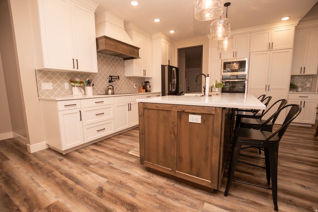 Imagine a meticulously maintained 6-bedroom, 4.5-bath home in the desirable Meadow View subdivision. Upgraded throughout with a chef-ready appliance package, this home also features a large hidden pantry and partially fenced yard with inviting landscaping. An oversized 3-car attached garage comes plumbed in for EV charging plug for modern convenience. Enjoy the flexibility of master bedrooms on both levels, plus a basement with secure storage and cold storage. A superb location completes the package, making this home a standout for comfortable, upscale living.
