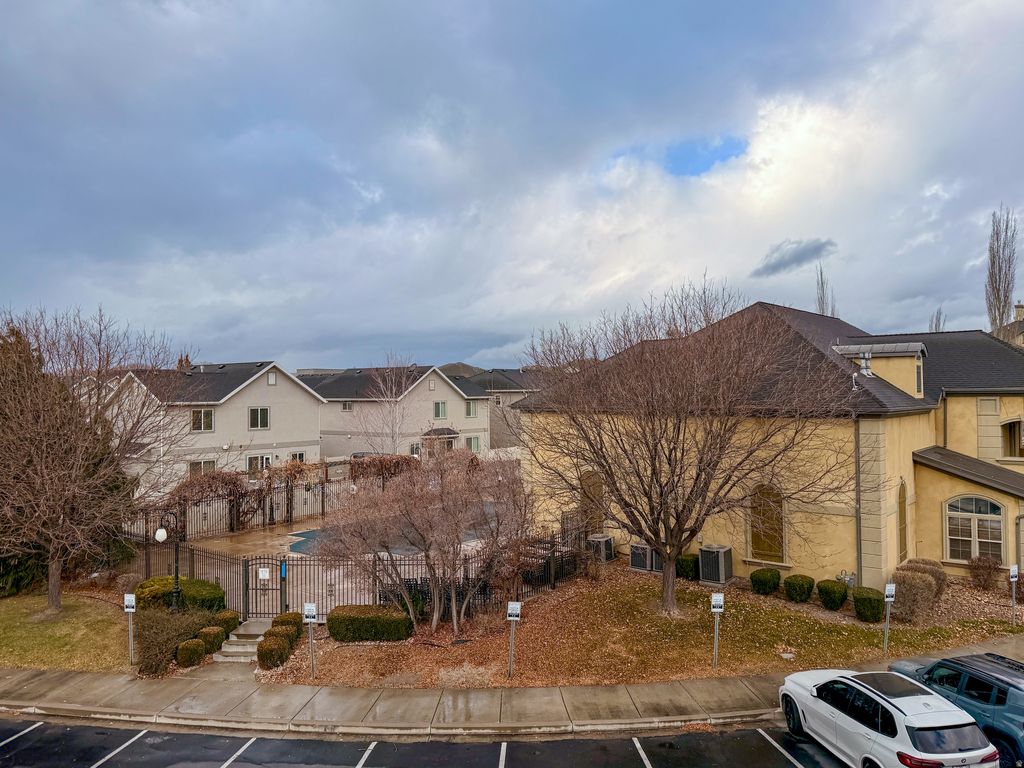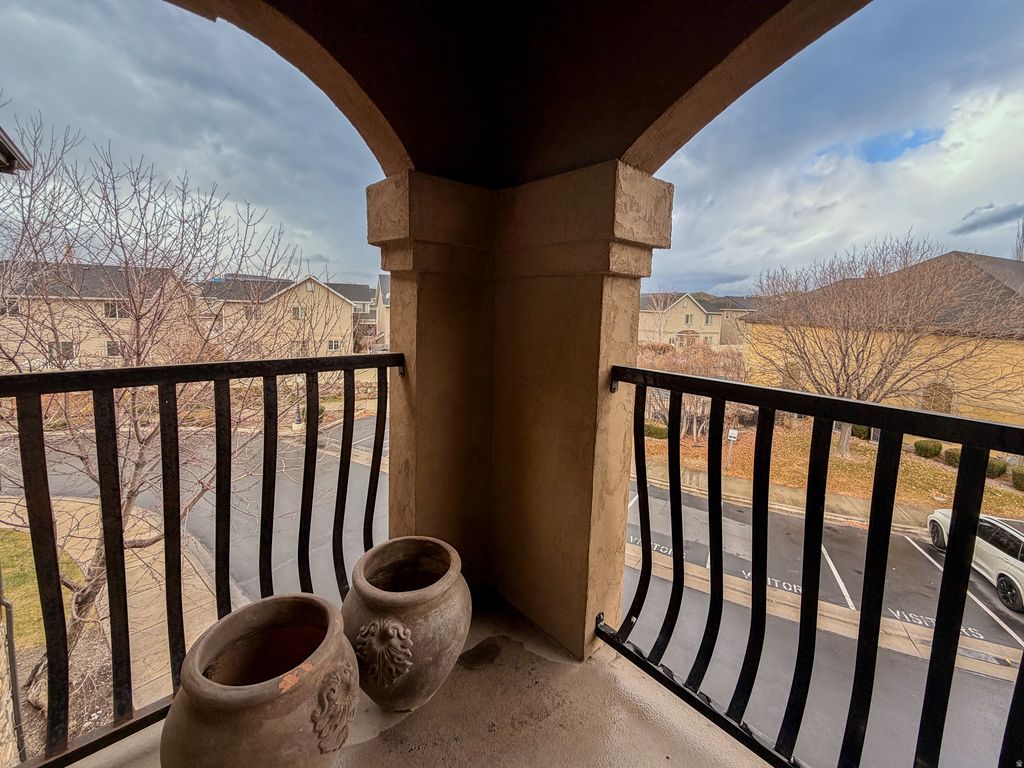 Top-floor condo with vaulted ceilings in the highly sought-after Belle Monet community-enjoy the privacy of no upstairs neighbors and stunning mountain views from two private balconies, including one off the master bedroom. Inside, you'll find vaulted ceilings and granite countertops that add style and charm throughout. The open layout is perfect for everyday living or entertaining. Community amenities include a pool, clubhouse, gym, theater room, and two beautifully maintained parks with playgrounds. With quick access to I-15 and just minutes from restaurants, shopping, and entertainment, this home blends comfort, elegance, and convenience. One car garage and one assigned open parking space. Square footage figures are provided as a courtesy estimate only and were obtained from county records . Buyer is advised to obtain an independent measurement.