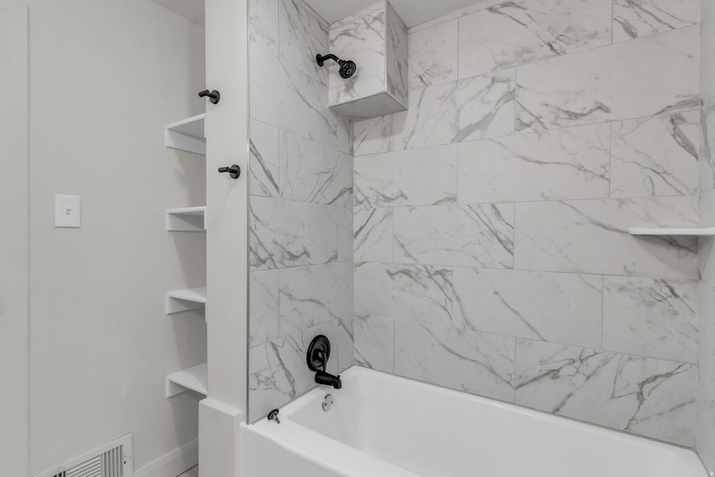 Beautifully renovated duplex situated on a spacious corner lot. The exterior has been freshly painted, and both units have been thoughtfully updated throughout. Each unit features 2 bedrooms, 1 full bathroom, a private living room, and a fully updated kitchen with brand-new cabinets, granite countertops, new appliances, and stylish new flooring. Both bathrooms have been refreshed with new modern vanities, updated light fixtures and tile surround shower. The property offers a main-level unit plus a separate basement unit with its own private entrance perfect for rental income, multi-generational living, or house hacking. Outside, you'll find a detached two-car garage, an additional detached carport, and a generously sized driveway, providing plenty of off-street parking for tenants or guests.