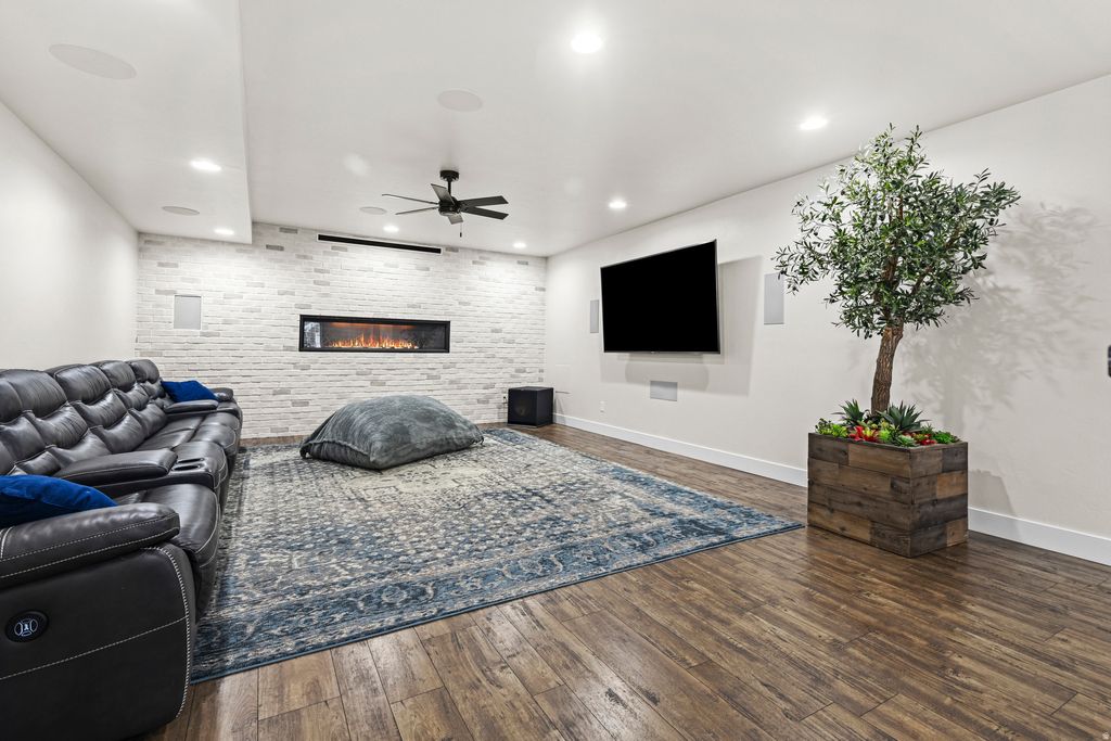 This home features extensive high-end upgrades designed for comfort, efficiency, and entertaining. The finished basement offers enhanced sound and fire protection with Rockwool Safe'n'Sound insulation, a dedicated home theater area with built-in Klipsch Dolby Atmos surround sound with multiple independent zones serving the bar area, game room, and office/bedroom, complete with an 85" Sony flat screen. A Napoleon 74" Vector Linear gas fireplace, wet bar with refrigerator and ice maker, and upgraded 20 amp electrical for gaming or future arcade use. High-efficiency systems include a Bosch 18 SEER heat pump, Trane XC95m furnace, Rheem 55-gallon water heater, and Kinetico water softener, along with custom plantation shutters throughout. Outdoor living is exceptional with a 44' x 13' Trex deck featuring a RainEscape system, two-story timber pergola, custom 14' bar overlooking yard and future pool area, walk-out stamped concrete patio with gas line and power conduit ran in for a future outdoor kitchen. Professional landscaping with lighting, a large rock water feature, this was all designed with a future pool in mind. Complete with an illuminated 20' flagpole. Not to mention a double insulated wall/ storage room with metal door that contains a gun safe that will be included in sale. Bar stools downstairs and upstairs in the kitchen will be included. Buyer is responsible to verify all listing information, including sq. feet/ acreage, to buyer's own satisfaction.